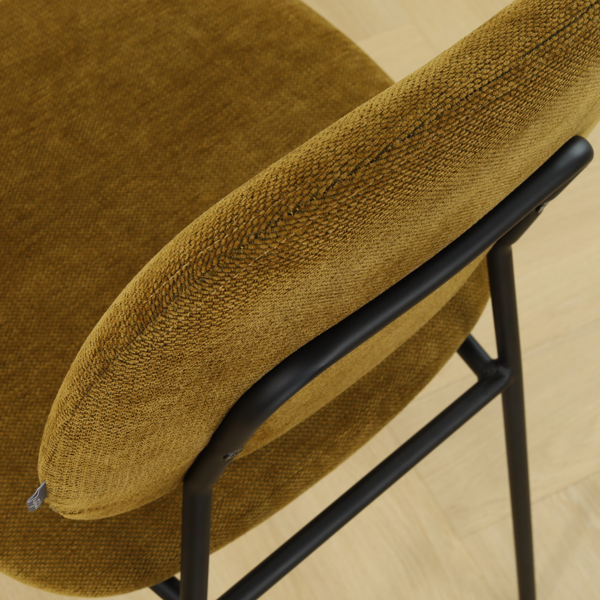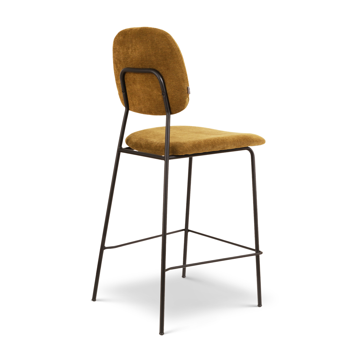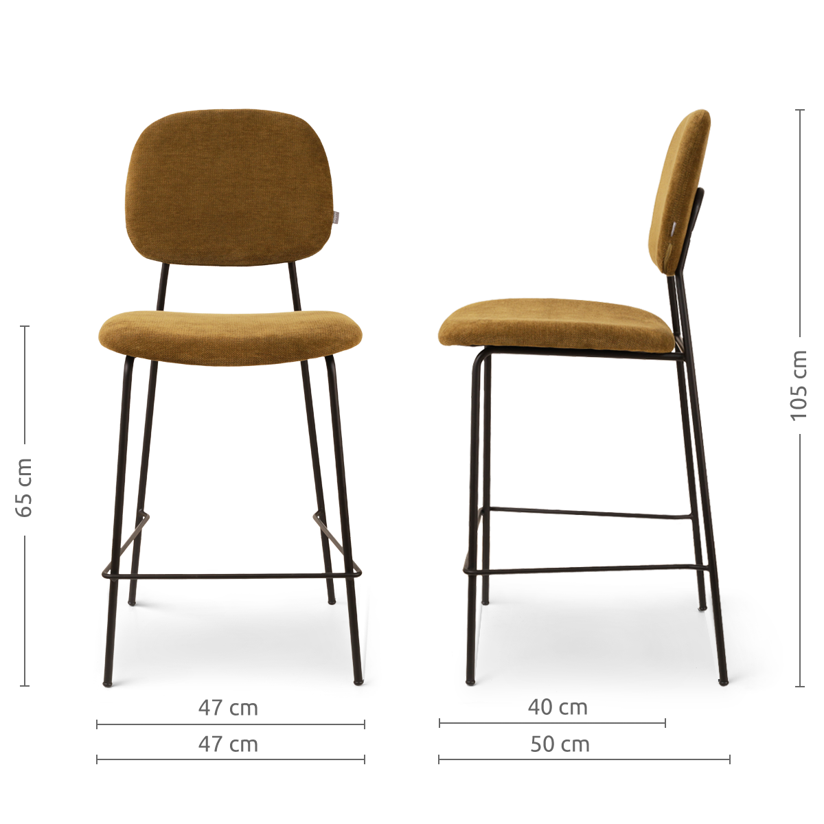 De Jasmijn barkruk in mosgroen is een echte sfeermaker in je keuken. De zachte zitting nodigt uit om lekker te blijven zitten en het zwarte metalen onderstel geeft een moderne uitstraling. De zithoogte van 65 cm maakt hem perfect voor kookeilanden.