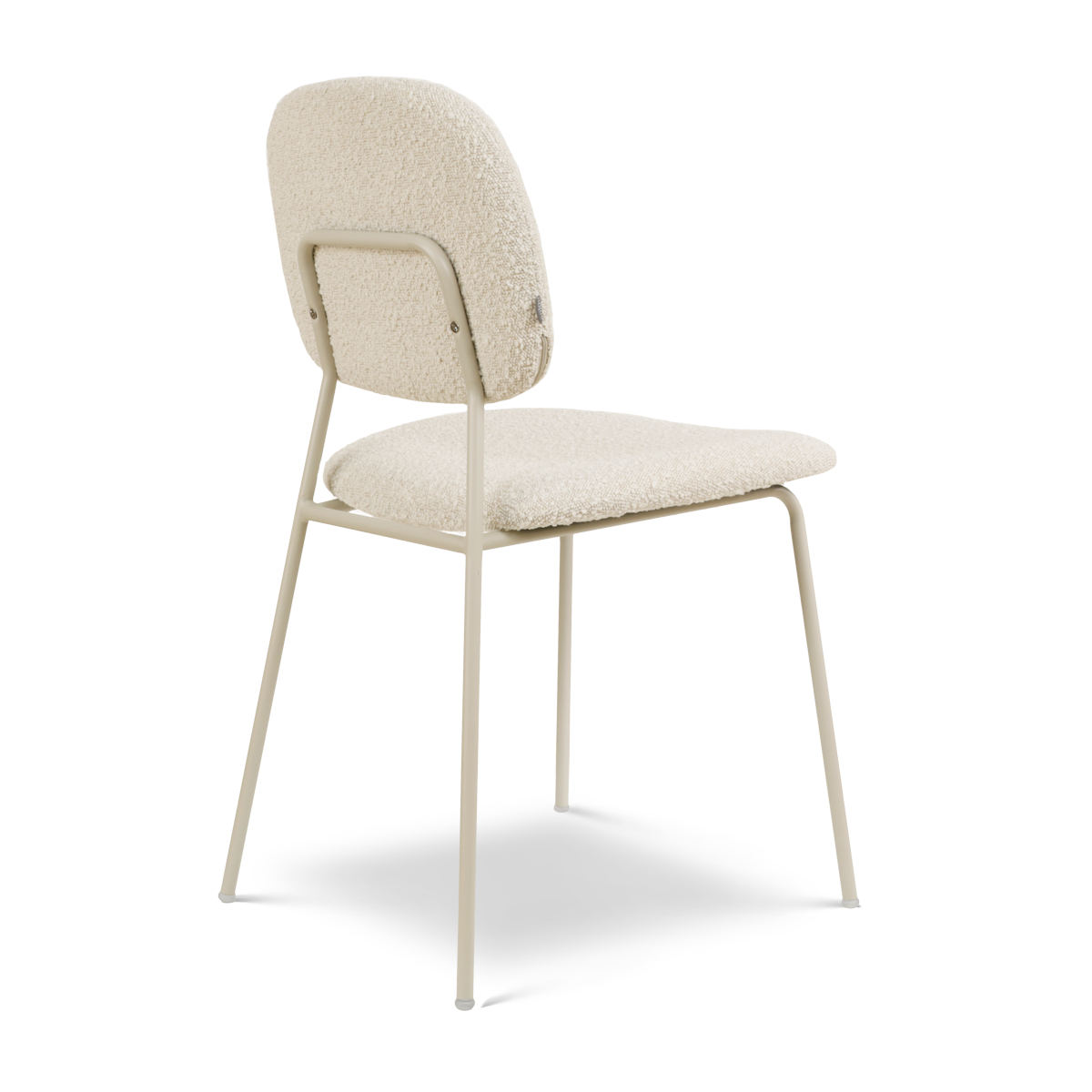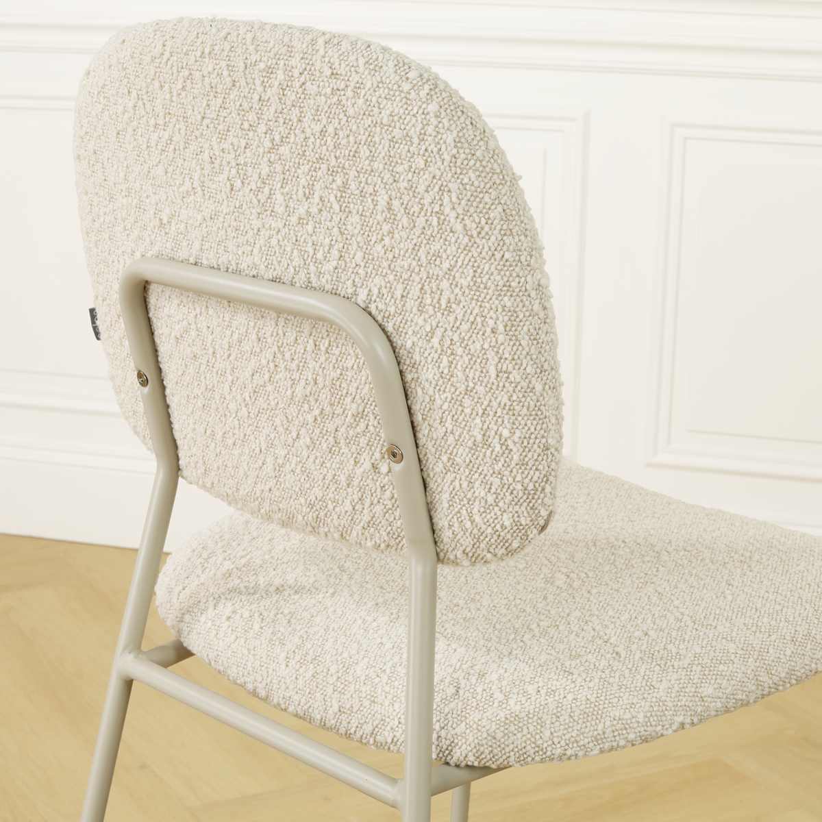 Elegant en natuurlijk: de Jasmijn eetkamerstoel in bouclé beige met grijsbeige onderstel