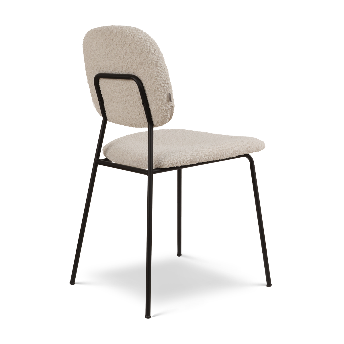 Elegant en comfortabel: de Jasmijn eetkamerstoel in bouclé beige met zwart onderstel