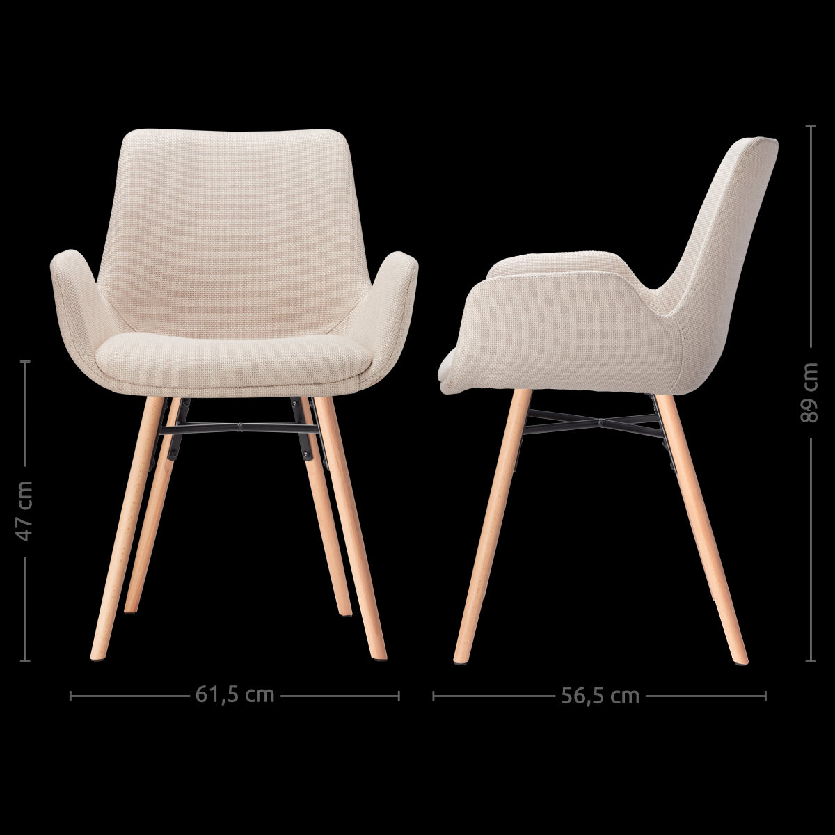 - Beukenhouten onderstel met een metalen kruisverbinding voor extra stevigheid
