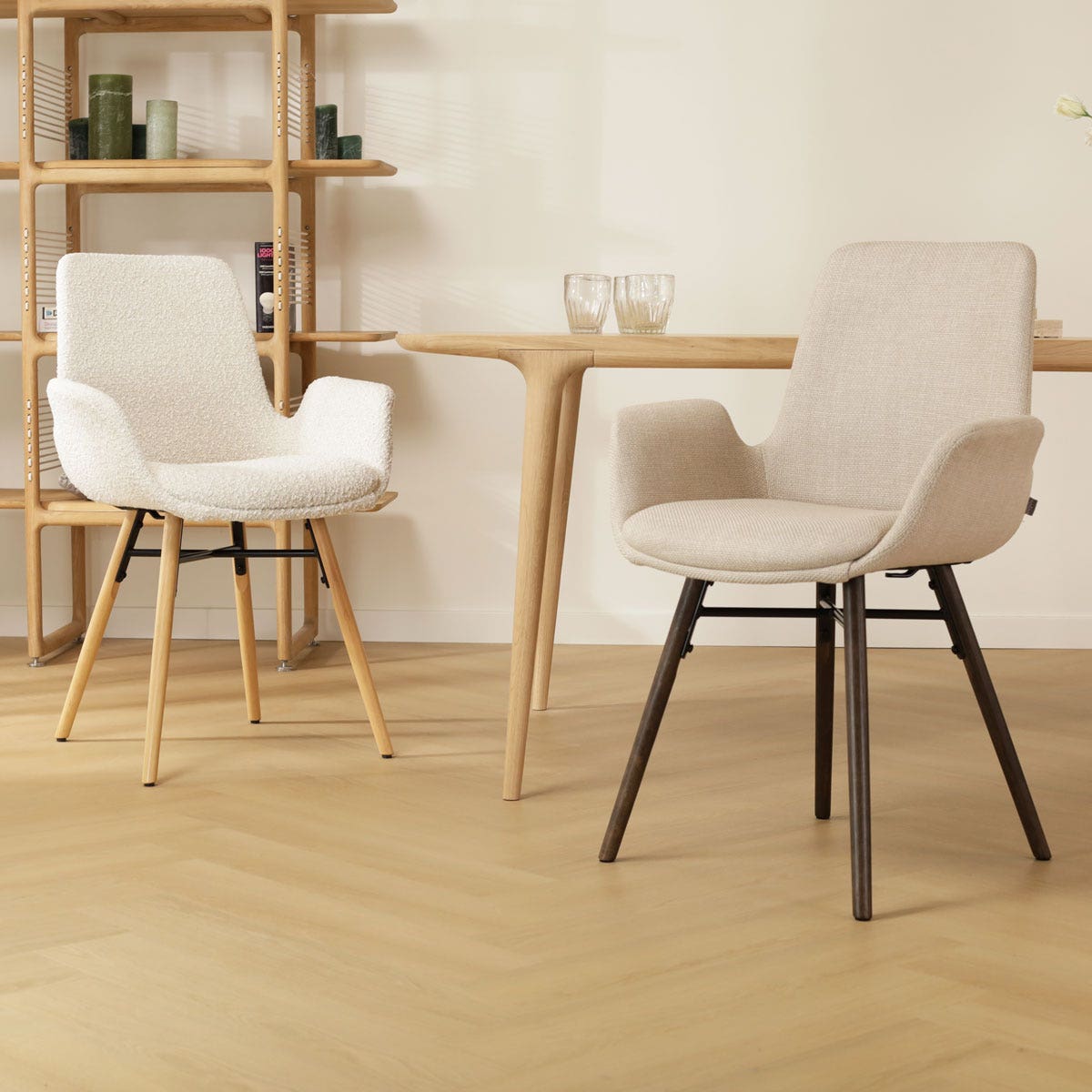 - De Eef zitting is verkrijgbaar in beige, warm grijs, beige gemêleerd en bouclé beige bekleding