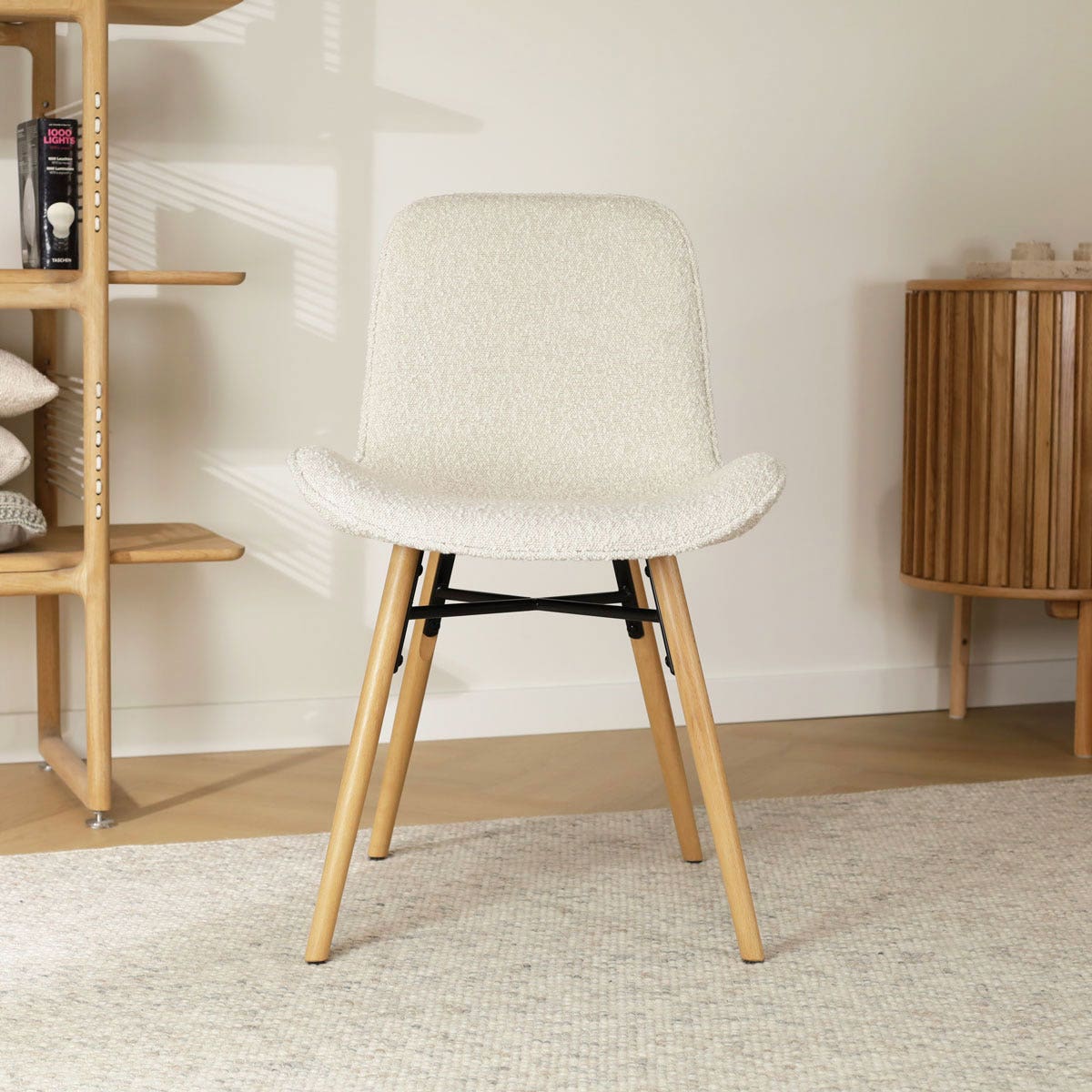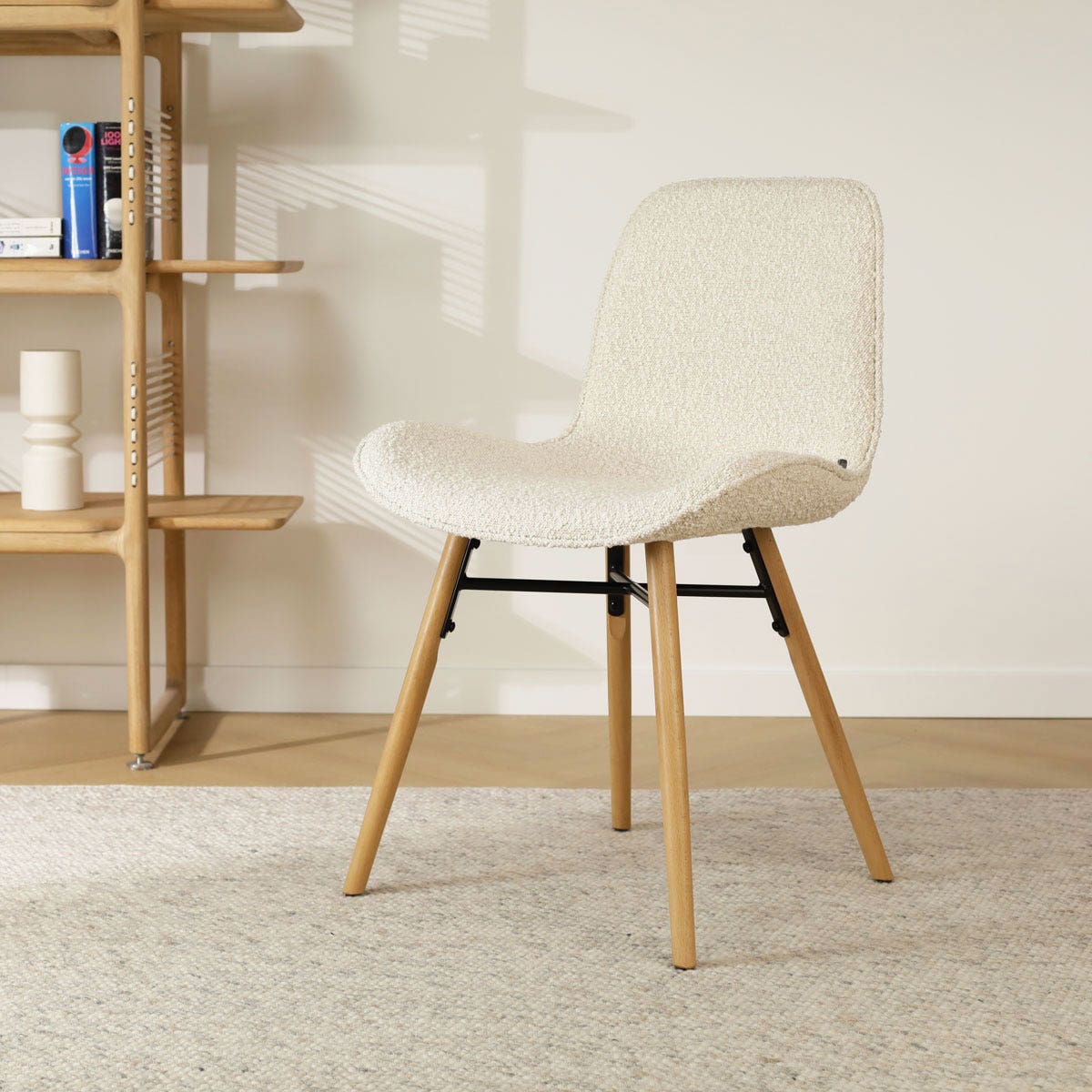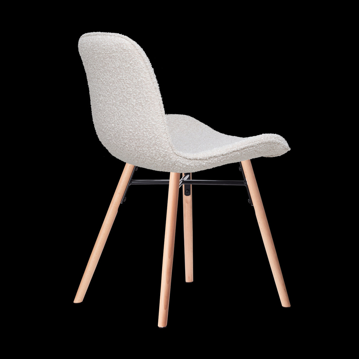 Deze eetkamerstoel combineert een prachtig houten onderstel met een elegante gestoffeerde zitting voor een gezellige uitstraling rond de eettafel. De poten van deze stoel zijn gemaakt van beukenhout en hebben een zwarte metalen kruisverbinding voor extra stabiliteit. Deze eetkamerstoel heeft een zitting van stof met een gevleugeld zitvlak, wat een zacht en comfortabel oppervlak biedt om op te zitten. Net als andere eetkamerstoelen zonder armleuningen geeft de Nena-Fé je de vrijheid je stoel gemakkelijk onder de eettafel te schuiven. Met de acht beschikbare kleuropties voor de stoffen bekleding past deze stoel in alle woonstijlen, van modern tot Scandinavisch en klassiek. Kies jouw favoriet en zet die gezellige diners maar vast in de agenda!