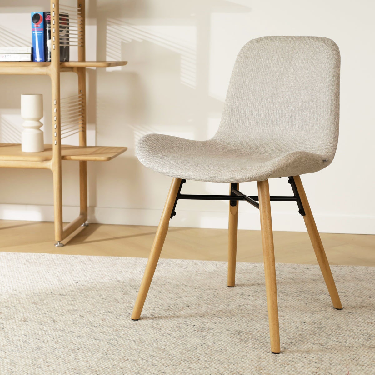De zitting van deze eetkamerstoel is verkrijgbaar in een zachte stof. Het onderstel is gemaakt van hout en heeft als leuk detail in het midden een metalen kruis. De Nena kuipstoel heeft een modern en stijlvol design, dit komt door de combinatie van het houten onderstel met de metalen details. Hierdoor staat de Nena eetkamerstoel prachtig in verschillende woonstijlen.