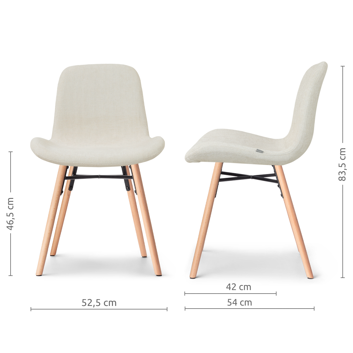 Deze eetkamerstoel combineert een prachtig houten onderstel met een elegante gestoffeerde zitting voor een gezellige uitstraling rond de eettafel. De poten van deze stoel zijn gemaakt van beukenhout en hebben een zwarte metalen kruisverbinding voor extra stabiliteit. Deze eetkamerstoel heeft een zitting van stof met een gevleugeld zitvlak, wat een zacht en comfortabel oppervlak biedt om op te zitten. Net als andere eetkamerstoelen zonder armleuningen geeft de Nena-Fé je de vrijheid je stoel gemakkelijk onder de eettafel te schuiven. Met de acht beschikbare kleuropties voor de stoffen bekleding past deze stoel in alle woonstijlen, van modern tot Scandinavisch en klassiek. Kies jouw favoriet en zet die gezellige diners maar vast in de agenda!
