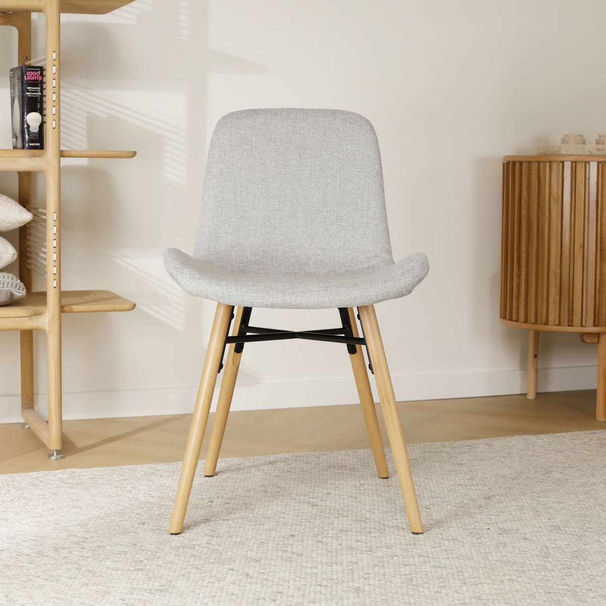 Deze eetkamerstoel combineert een prachtig houten onderstel met een elegante gestoffeerde zitting voor een gezellige uitstraling rond de eettafel. De poten van deze stoel zijn gemaakt van beukenhout en hebben een zwarte metalen kruisverbinding voor extra stabiliteit. Deze eetkamerstoel heeft een zitting van stof met een gevleugeld zitvlak, wat een zacht en comfortabel oppervlak biedt om op te zitten. Net als andere eetkamerstoelen zonder armleuningen geeft de Nena-Fé je de vrijheid je stoel gemakkelijk onder de eettafel te schuiven. Met de acht beschikbare kleuropties voor de stoffen bekleding past deze stoel in alle woonstijlen, van modern tot Scandinavisch en klassiek. Kies jouw favoriet en zet die gezellige diners maar vast in de agenda!
