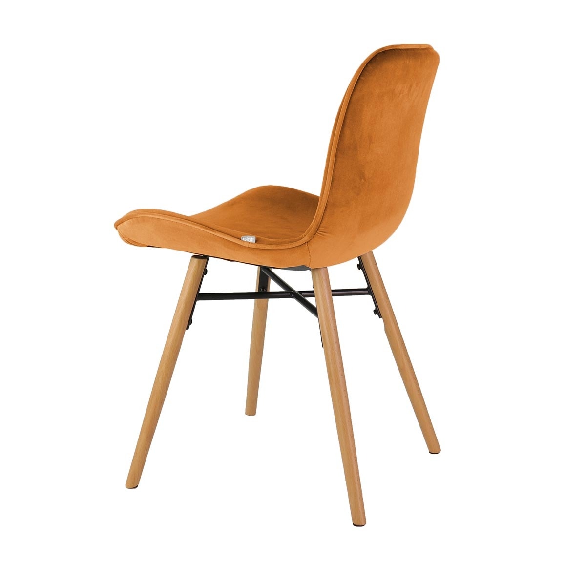 De zitting van deze eetkamerstoel is bekleed met een zachte fluwelen stof. Het onderstel is gemaakt van hout en heeft als leuk detail in het midden een metalen kruis. De Nena kuipstoel heeft een modern en stijlvol design, dit komt door de combinatie van het houten onderstel met de metalen details. Hierdoor staat de Nena eetkamerstoel prachtig in verschillende woonstijlen.