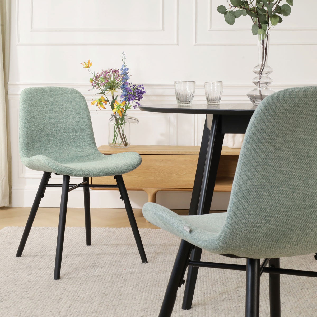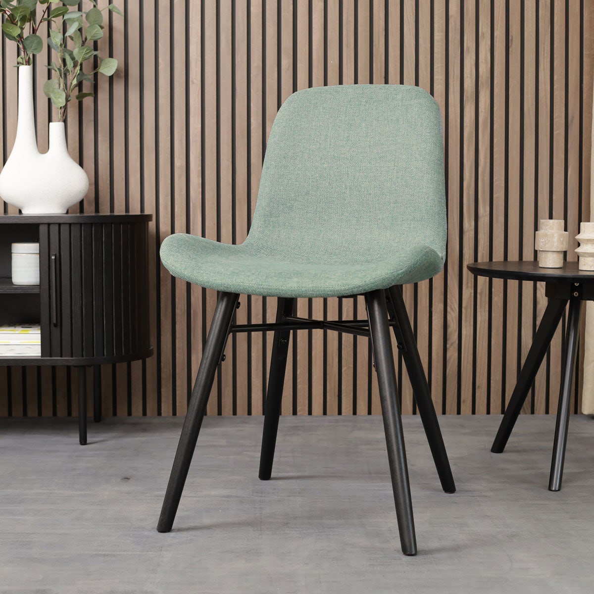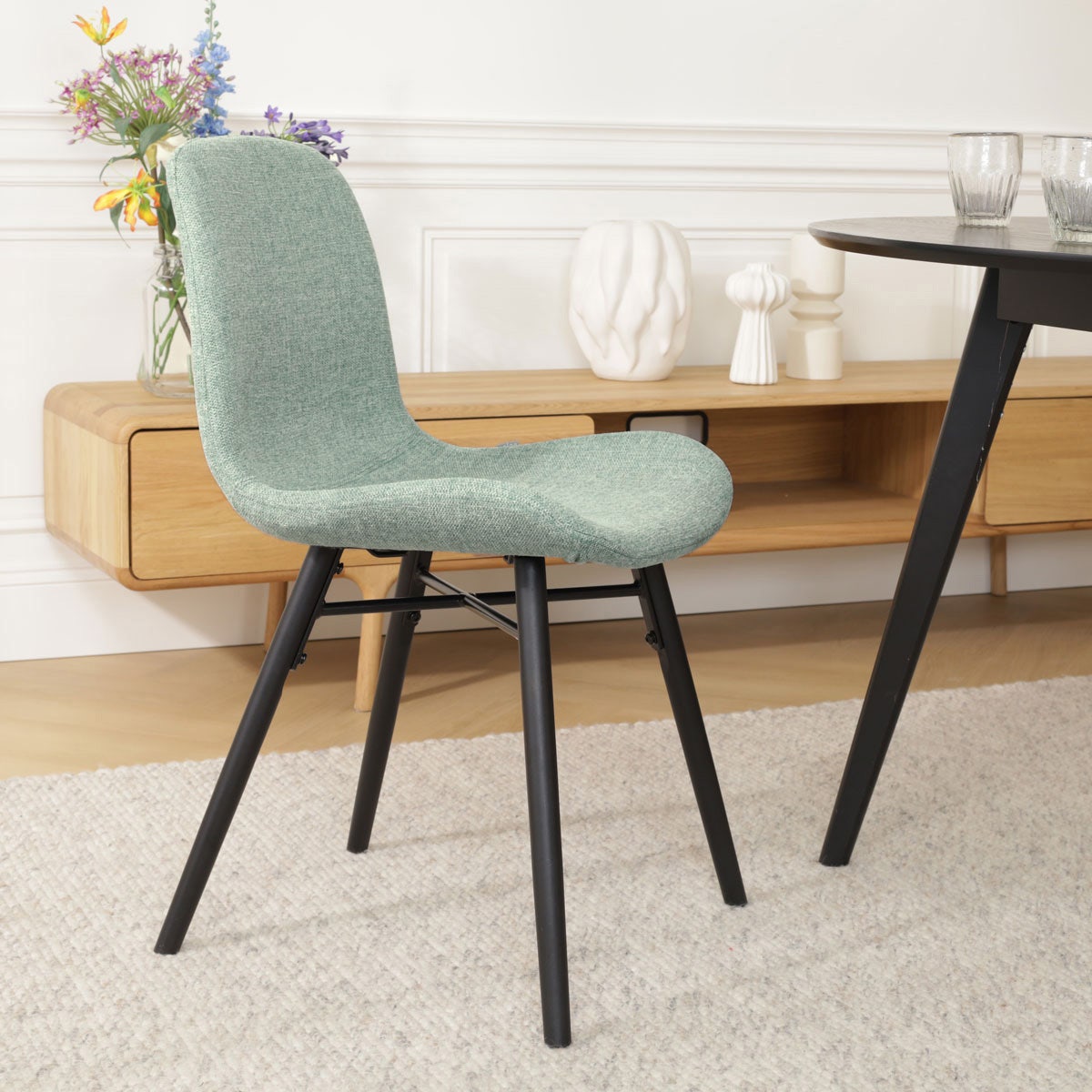 Deze eetkamerstoel combineert een prachtig houten onderstel met een elegante gestoffeerde zitting voor een gezellige uitstraling rond de eettafel. De zwarte poten van deze stoel zijn gemaakt van beukenhout en hebben een metalen kruisverbinding voor extra stabiliteit. Deze eetkamerstoel heeft een zitting van stof met een gevleugeld zitvlak, wat een zacht en comfortabel oppervlak biedt om op te zitten. Net als andere eetkamerstoelen zonder armleuningen geeft de Nena-Fé je de vrijheid je stoel gemakkelijk onder de eettafel te schuiven. Met de acht beschikbare kleuropties voor de stoffen bekleding past deze stoel in alle woonstijlen, van modern tot Scandinavisch en klassiek. Kies jouw favoriet en zet die gezellige diners maar vast in de agenda!