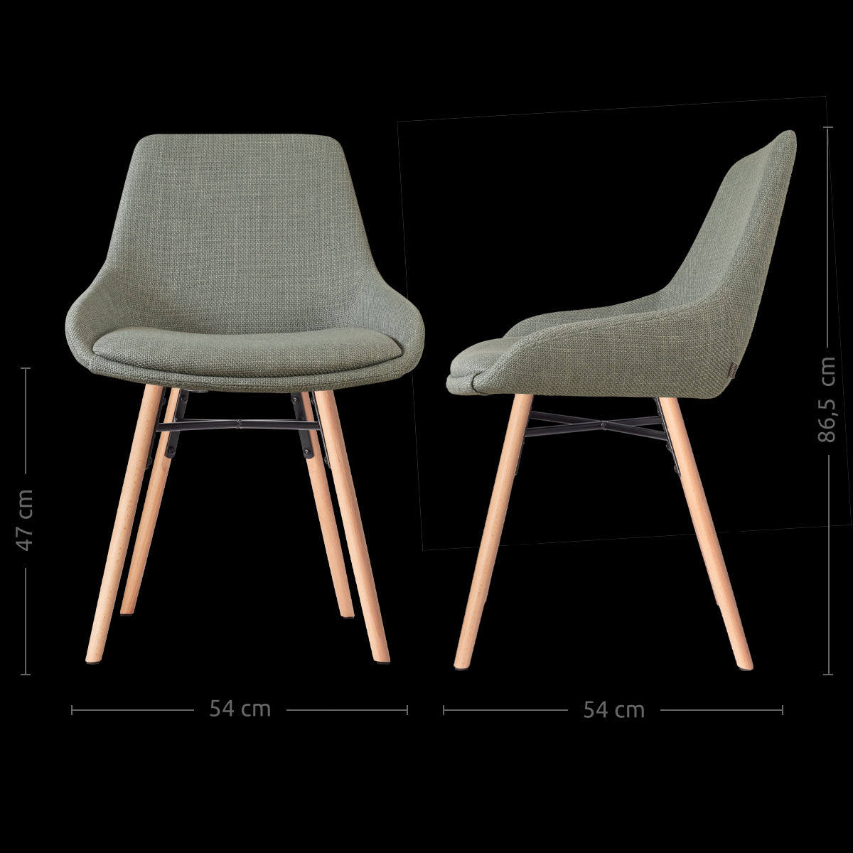 Deze stoel zonder armleuningen brengt een warme sfeer en functioneel design naar je eetkamer, en is een ideale keuze voor zowel Scandinavische als landelijke interieurs. De zitting, volledig gestoffeerd in luxe saliegroene stof, biedt een hoog zitcomfort dankzij de ergonomische vorm en een zithoogte van 47 cm. De natuurlijke charme van de bruine beukenhouten poten, met een metalen kruisverbinding, voegt stabiliteit toe en zorgt ervoor dat de stoel eenvoudig in elkaar te zetten is. Met een totale hoogte van 86,5 cm en een zitdiepte van 40 cm, biedt de Nena-Isa stoel voldoende bewegingsruimte voor een comfortabele eetervaring. Deze veelzijdige eetkamerstoel, past perfect bij verschillende tafels en ruimtes.