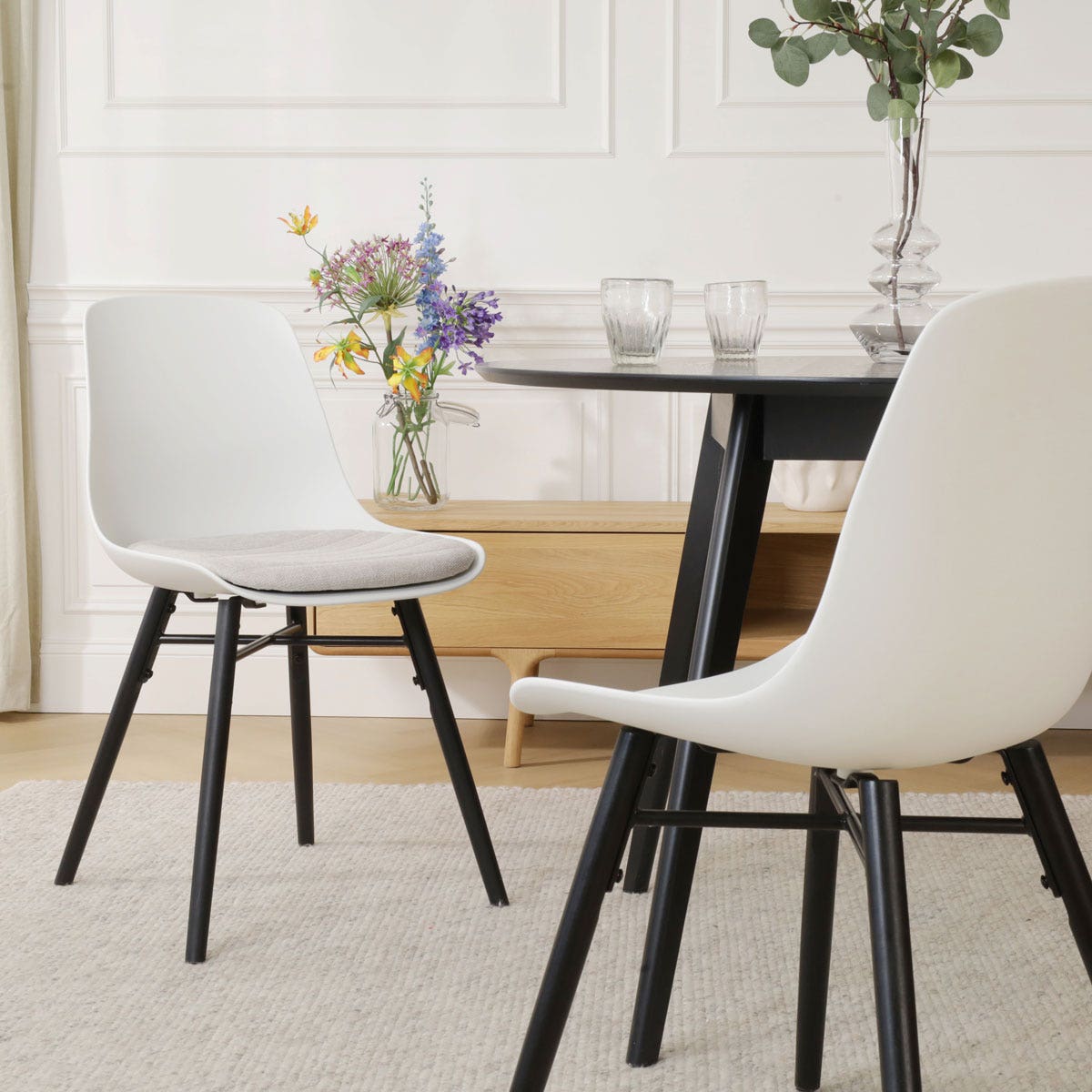 Deze eetkamerstoel combineert hout en kunststof op stijlvolle wijze in het tijdloze design. Het zwarte houten onderstel is voorzien van een metalen kruisverbinding tussen de poten en straalt moderniteit uit. De kunststof zitting geeft deze stoel een duurzaam en onderhoudsvriendelijk karakter, en is stijlvol vormgegeven met ronde vormen. Het vaste zitkussen is bekleed met zachte stof en voegt extra comfort toe aan je zitervaring tijdens lange maaltijden of gezellige avonden. De Nena-Liv eetkamerstoel maakt deel uit van de uitgebreide collectie Nolon eetkamerstoelen, waarbij zowel het onderstel als de zitting beschikbaar zijn in diverse combinaties. Voor extra zitcomfort kun je deze eetkamerstoel combineren met het Fem zitkussen van Nolon.