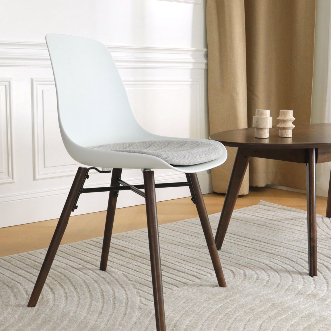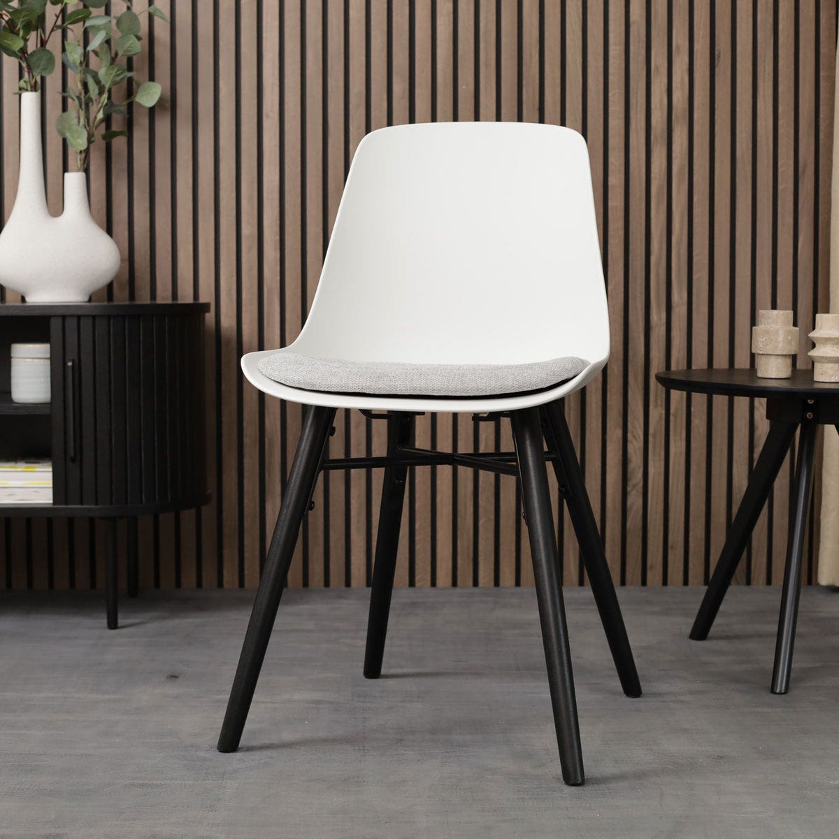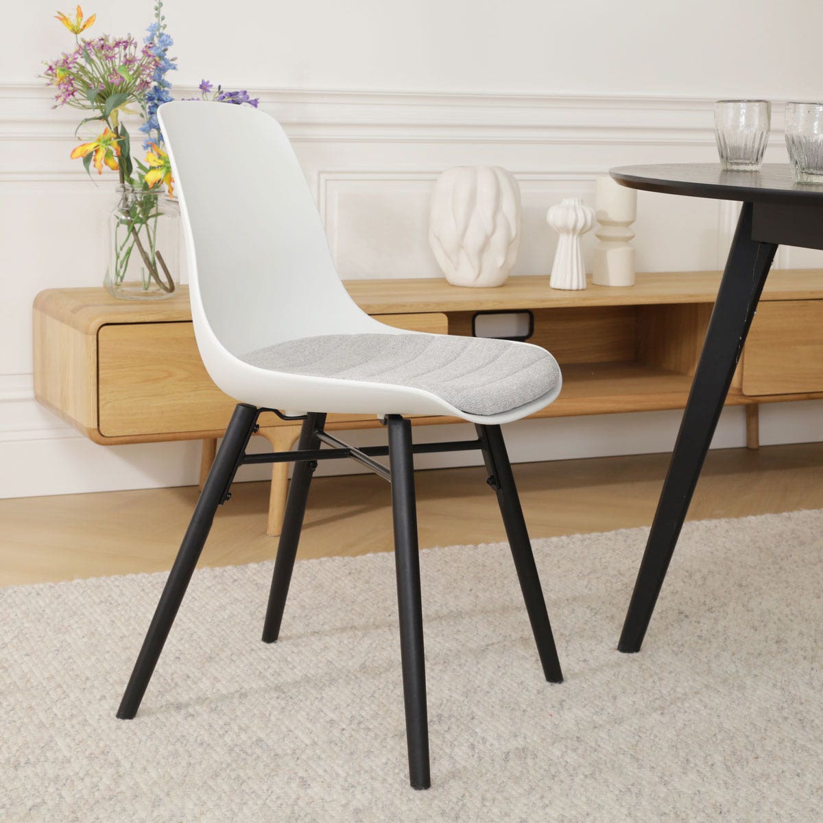 Deze eetkamerstoel combineert hout en kunststof op stijlvolle wijze in het tijdloze design. Het zwarte houten onderstel is voorzien van een metalen kruisverbinding tussen de poten en straalt moderniteit uit. De kunststof zitting geeft deze stoel een duurzaam en onderhoudsvriendelijk karakter, en is stijlvol vormgegeven met ronde vormen. Het vaste zitkussen is bekleed met zachte stof en voegt extra comfort toe aan je zitervaring tijdens lange maaltijden of gezellige avonden. De Nena-Liv eetkamerstoel maakt deel uit van de uitgebreide collectie Nolon eetkamerstoelen, waarbij zowel het onderstel als de zitting beschikbaar zijn in diverse combinaties. Voor extra zitcomfort kun je deze eetkamerstoel combineren met het Fem zitkussen van Nolon.
