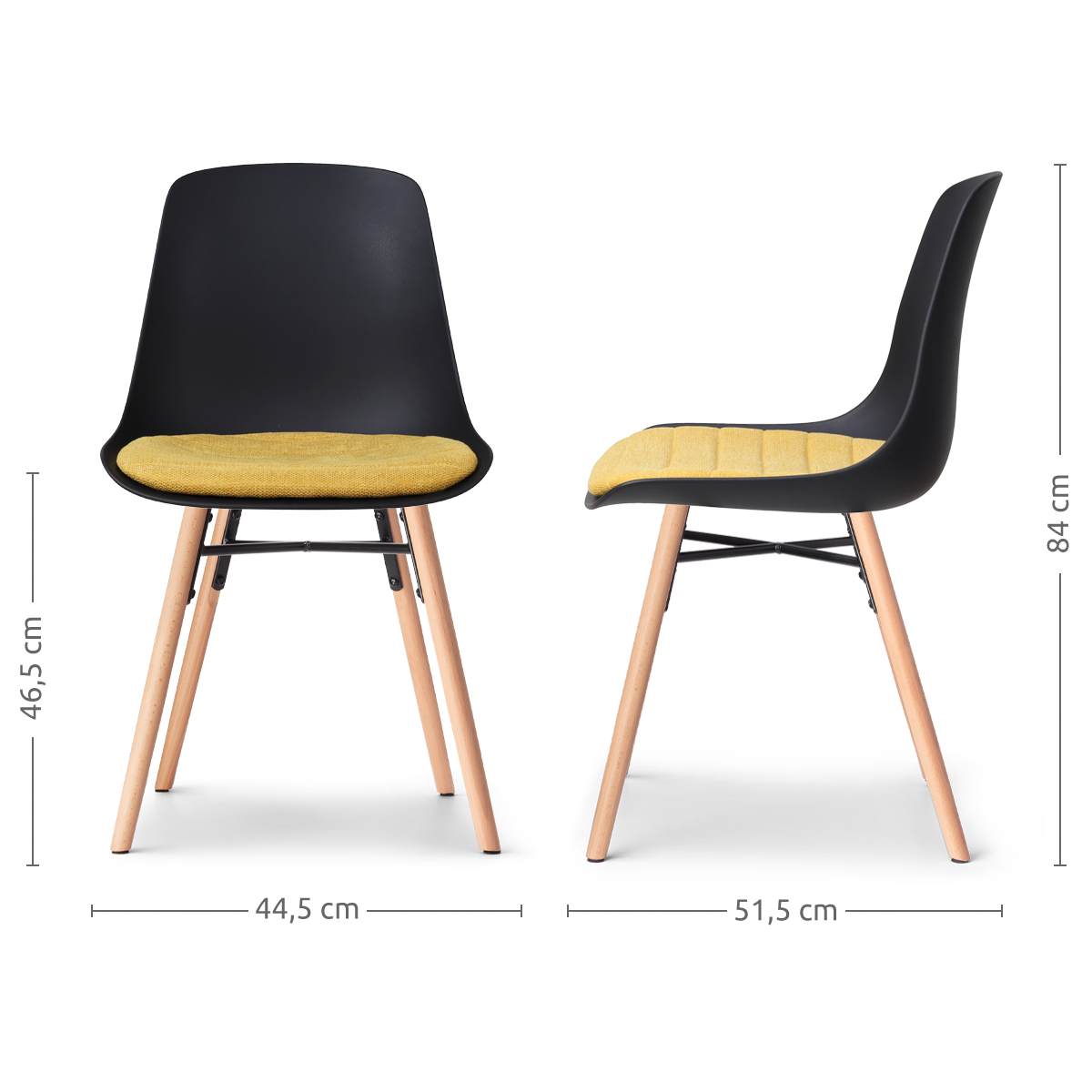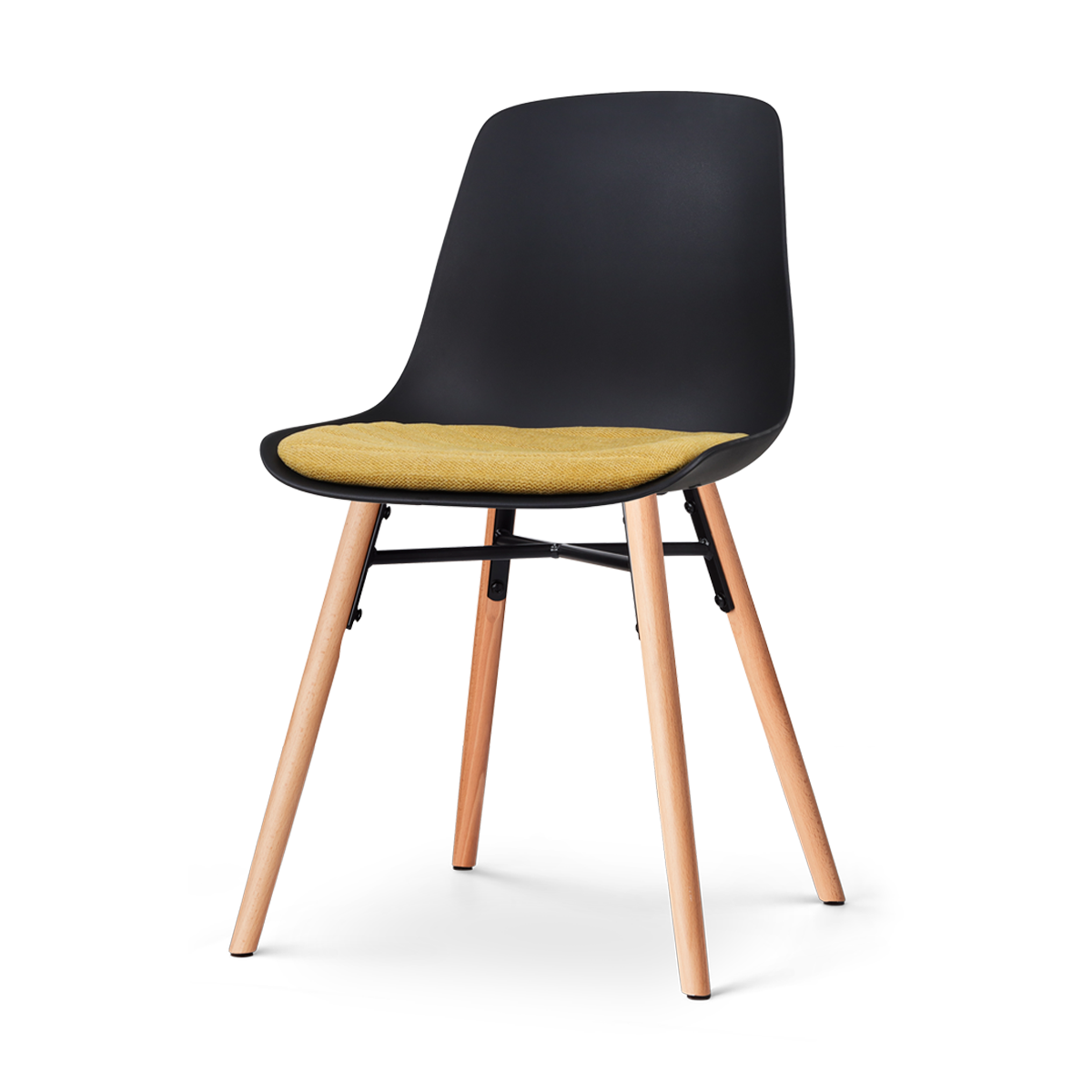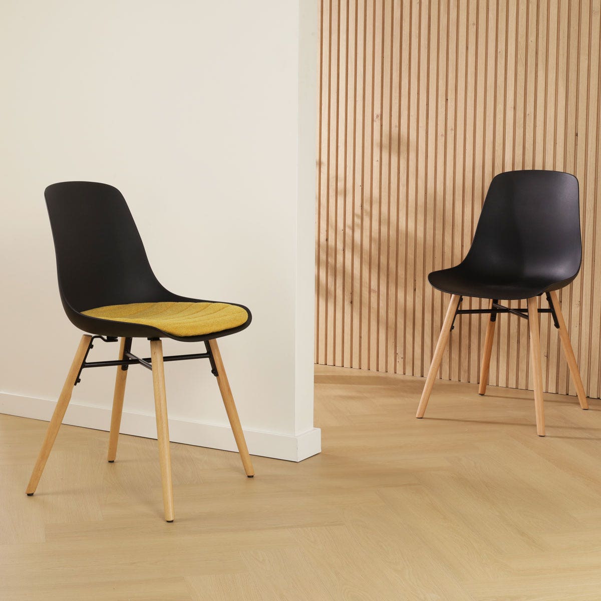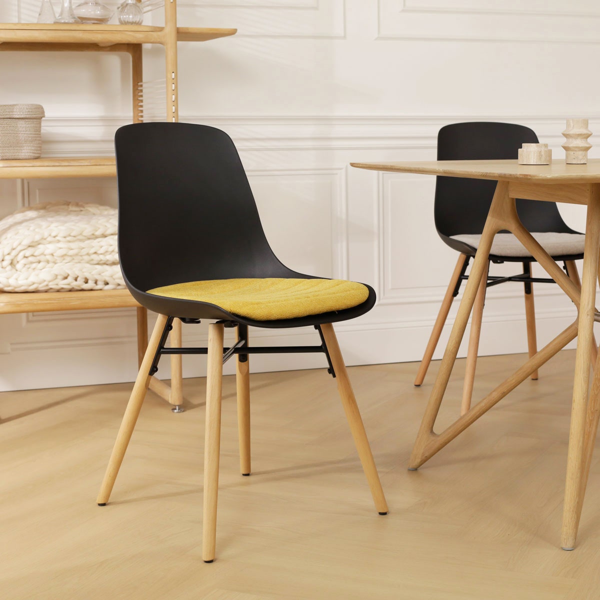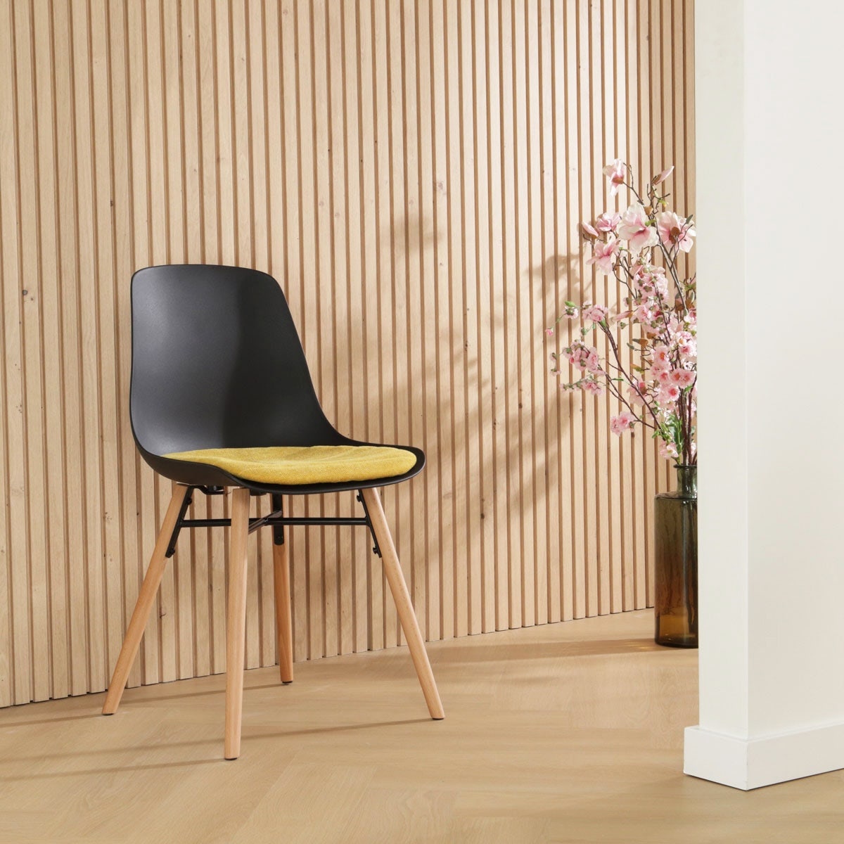 Nolon Nena-Liv Eetkamerstoel Zwart - Okergeel Kussen - Houten Poten