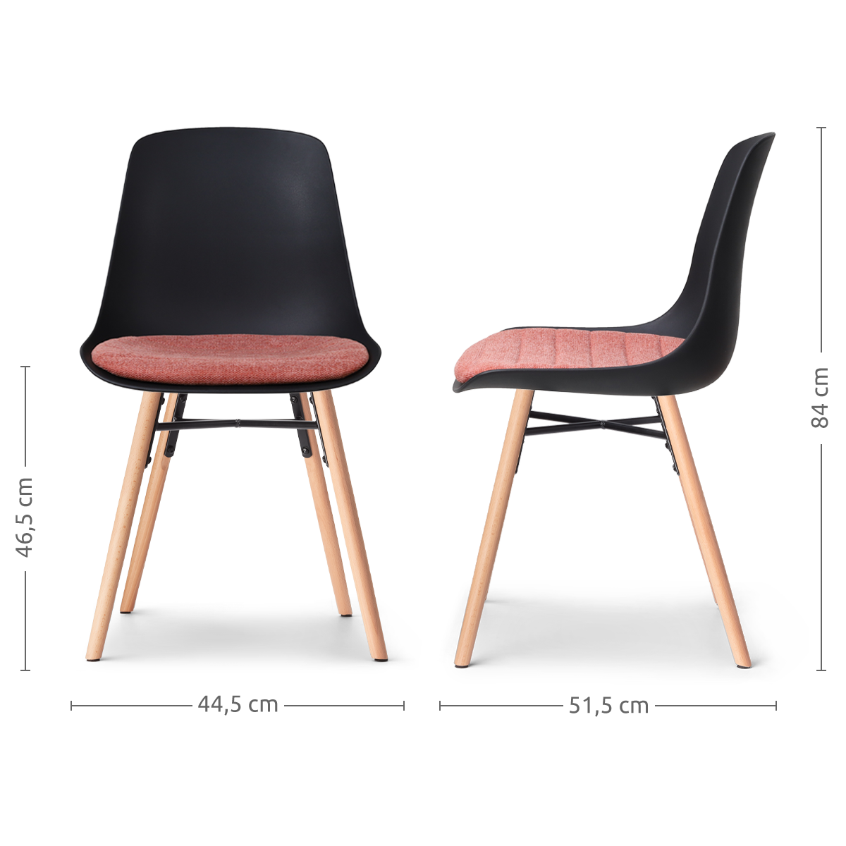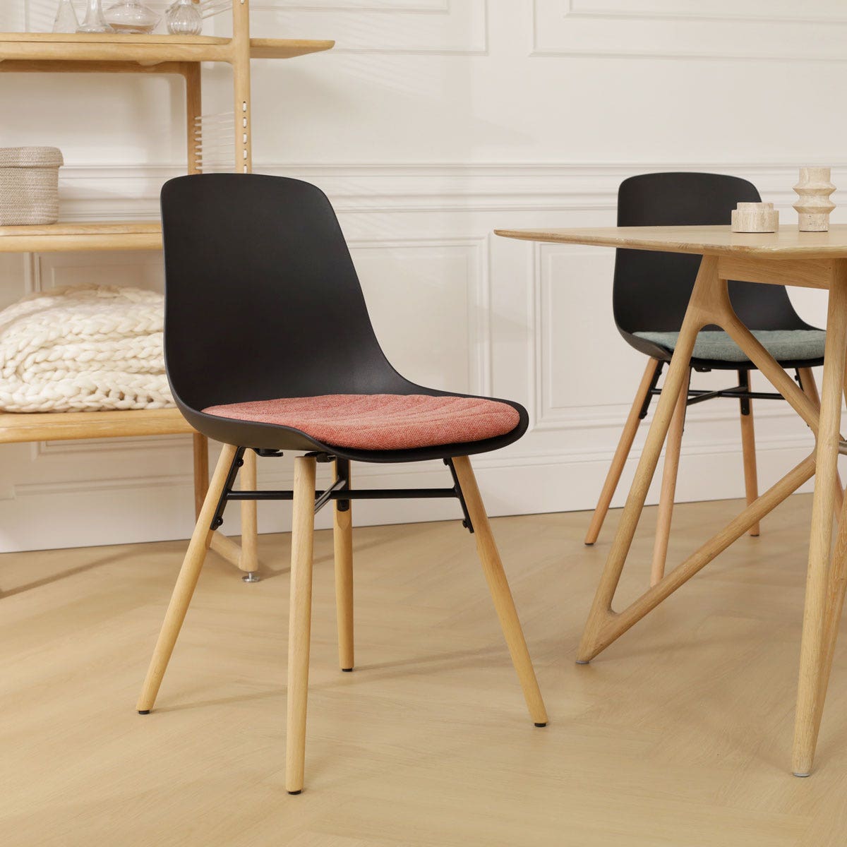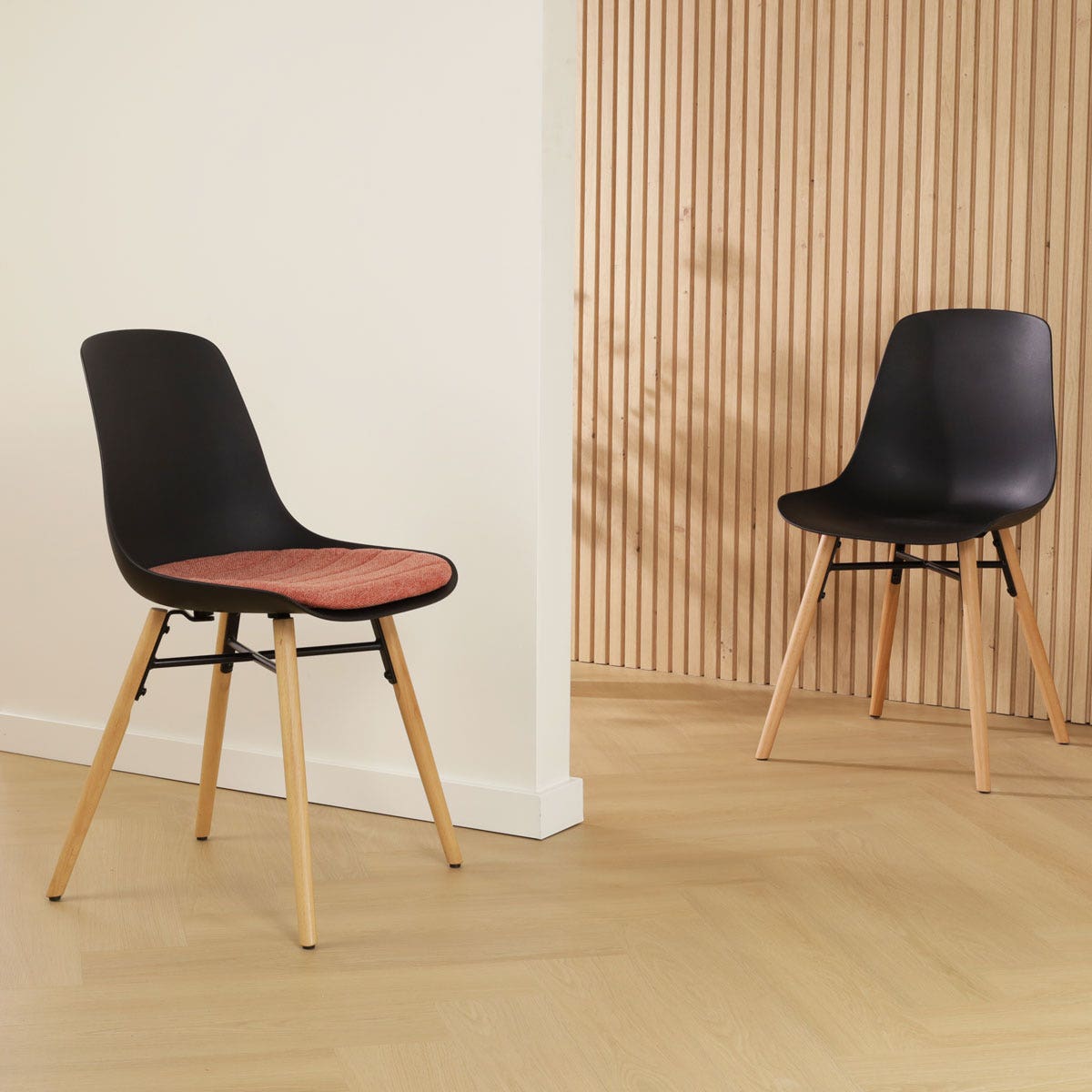 Nolon Nena-Liv Eetkamerstoel Zwart - Terracotta Kussen - Houten Poten
