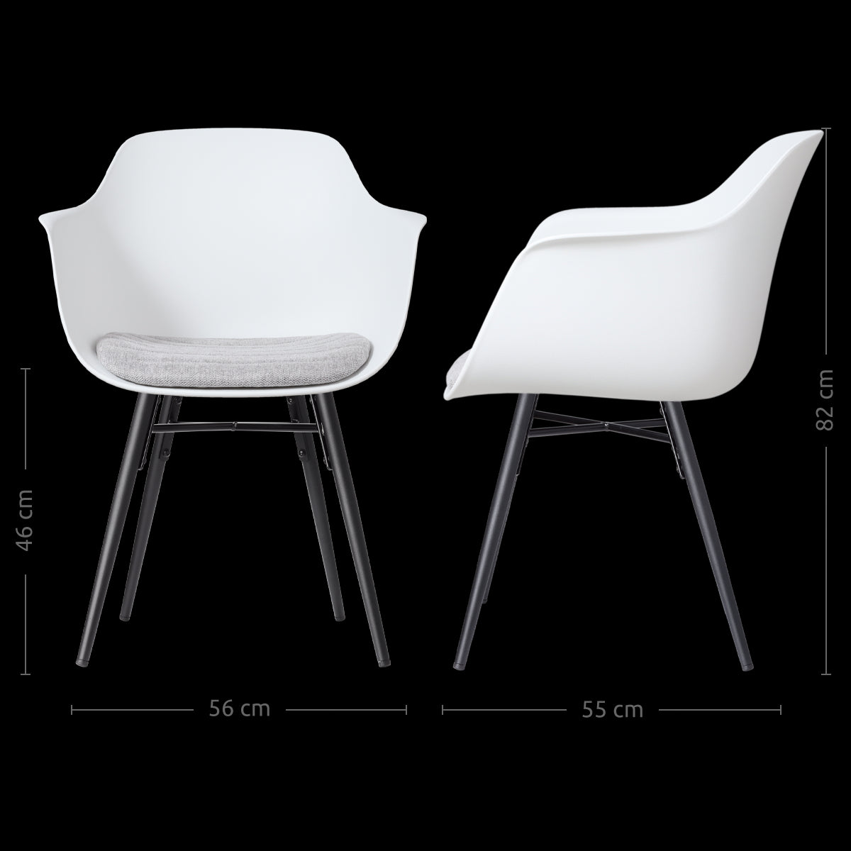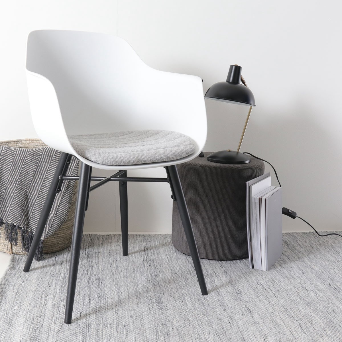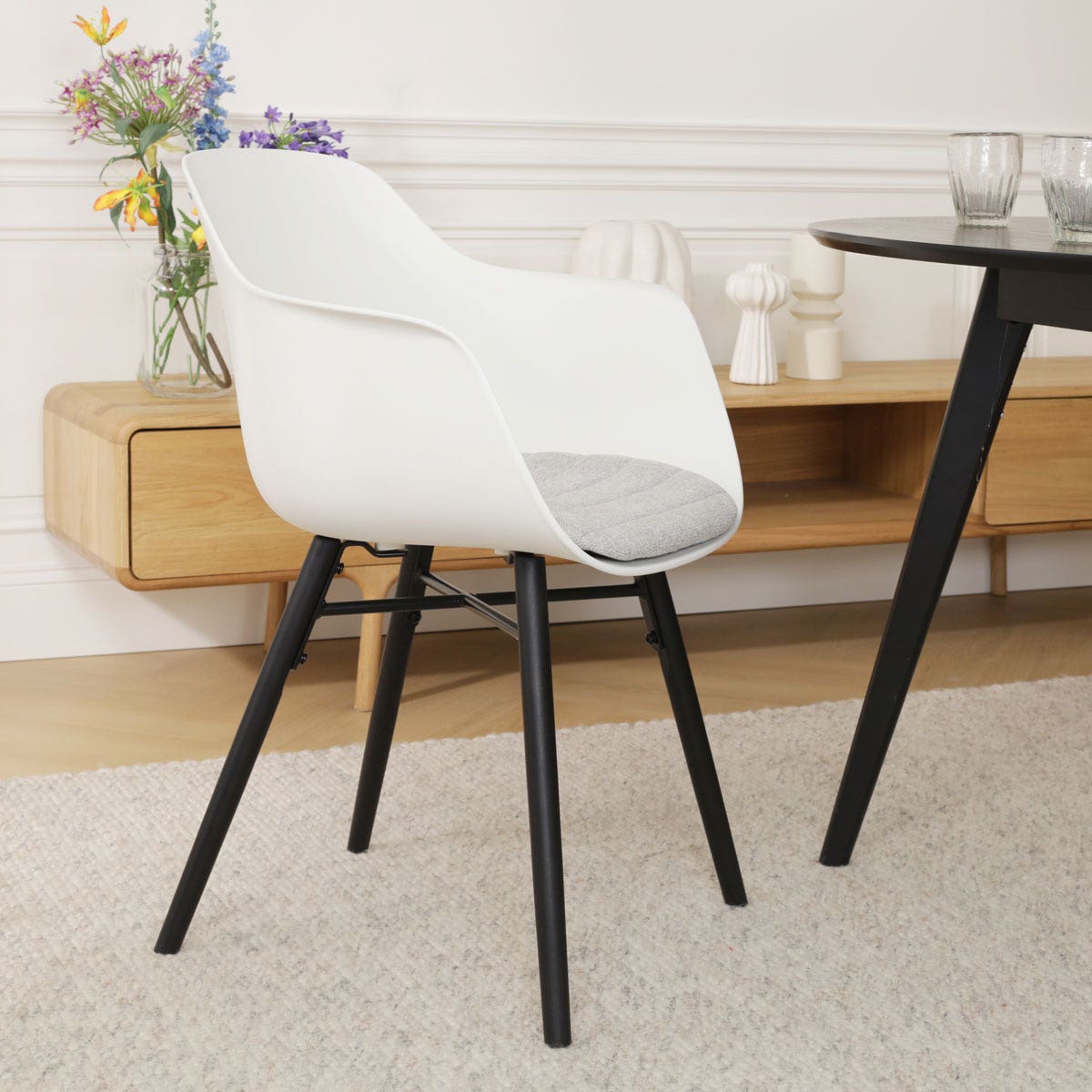 Een praktische en tegelijkertijd sfeervolle eetruimte creëer je met de Nena-Liz eetkamerstoel met kunststof zitting en armleuningen.
