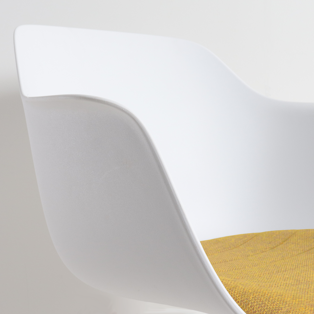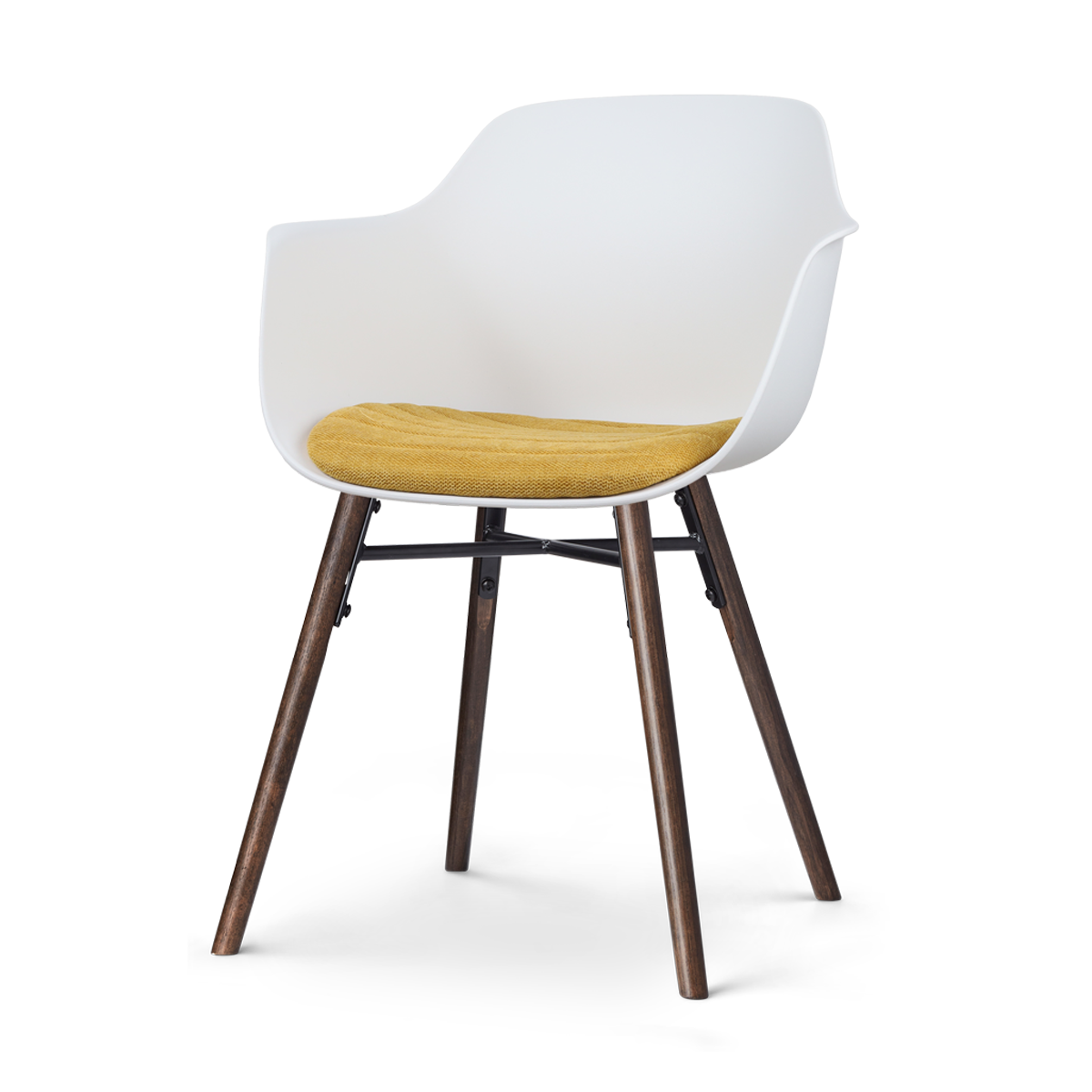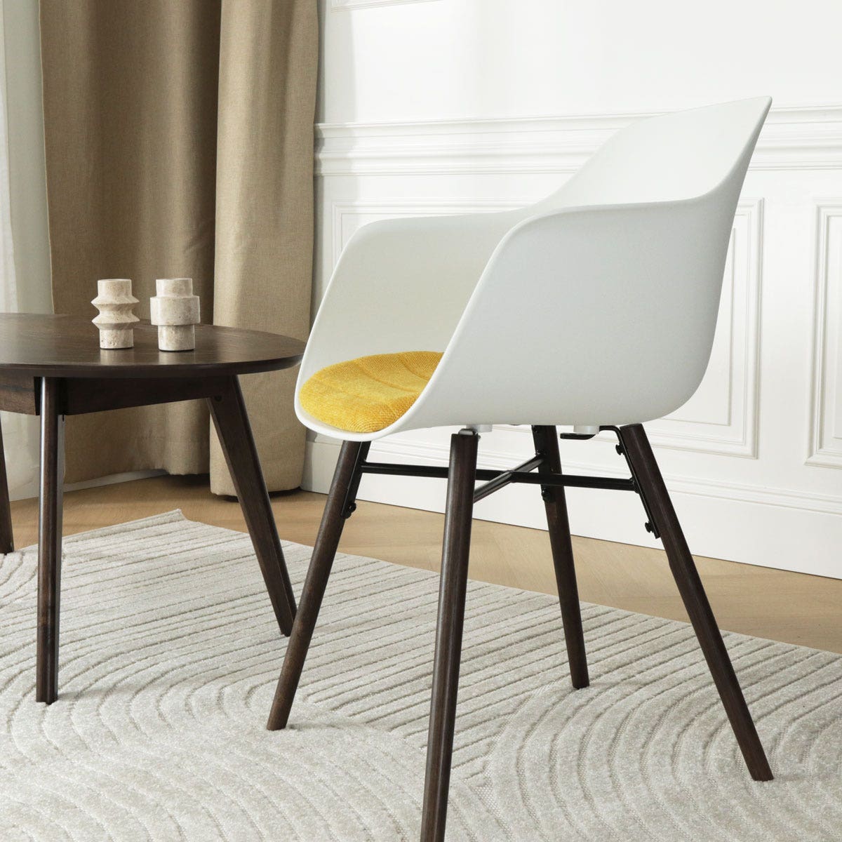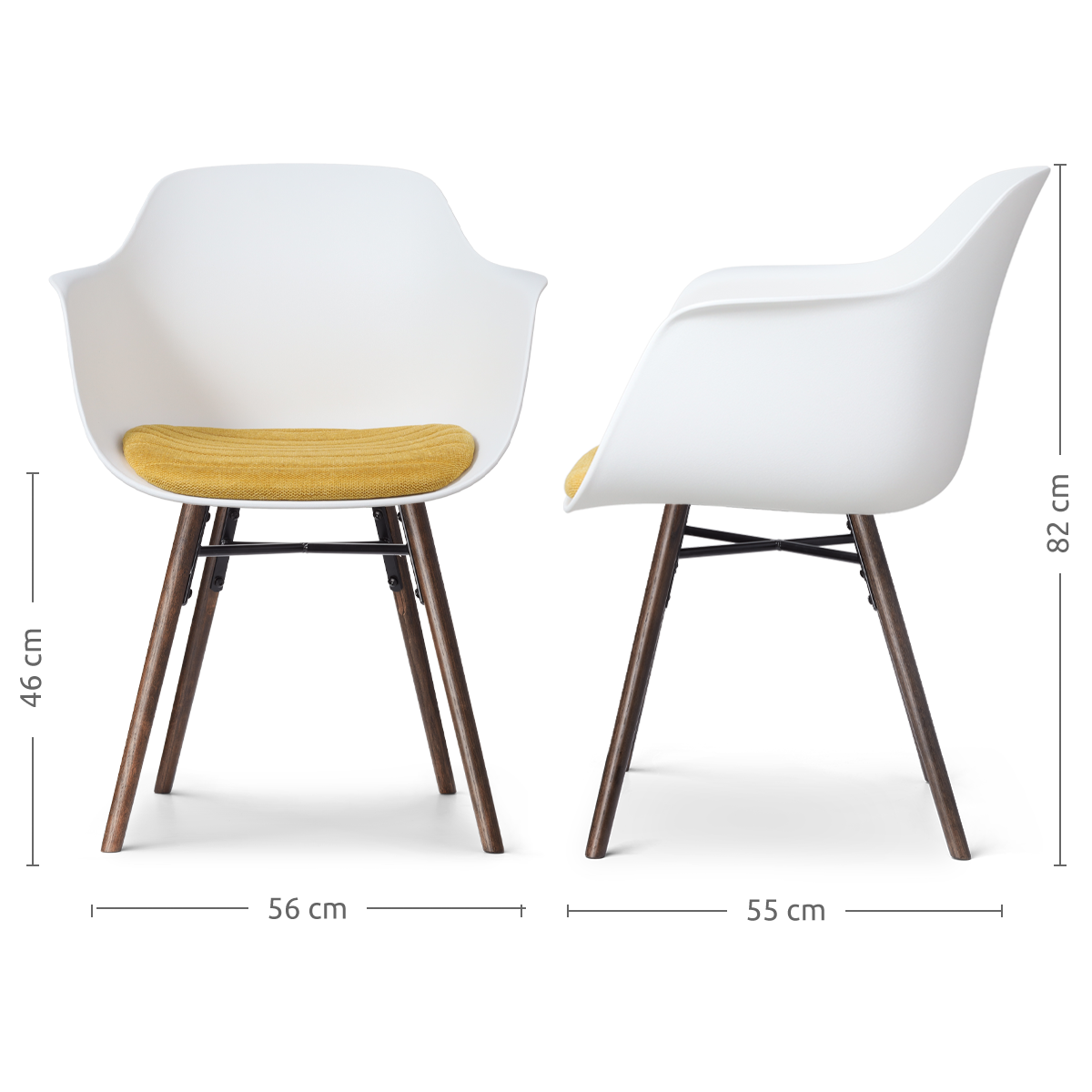 De combinatie van het strakke, eigentijdse ontwerp en de warme walnoot kleur van de houten poten voegt een vleugje elegantie toe aan elke eetkamer. De kunststof zitting van deze kuipstoel is niet alleen duurzaam, maar ook nog eens erg praktisch. Maak je geen zorgen over knoeien of morsen: het gladde oppervlak is gemakkelijk af te nemen met een vochtige doek. De houten poten zijn gemaakt van eikenhout, wat bijdraagt aan de duurzaamheid en stabiliteit van de stoel. Naast de ergonomische vorm van de kunststof zitting is de eetkamerstoel ook ontworpen met armleuningen, zodat je urenlang ontspannen aan tafel kan zitten. Het vaste zitkussen gemaakt van zachte stof tilt het comfort naar een nog hoger niveau en voegt wat zachtheid toe aan het ontwerp. Deze comfortabele kuipstoel is verkrijgbaar in twee verschillende kleuren en met vier kleuren stoelkussens, waardoor je eenvoudig de perfecte combinatie kunt vinden die past bij jouw persoonlijke stijl.