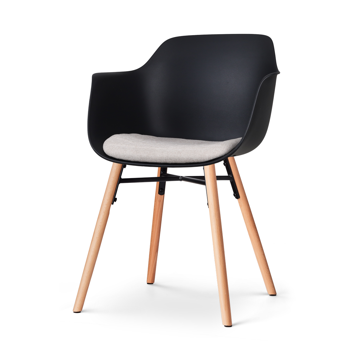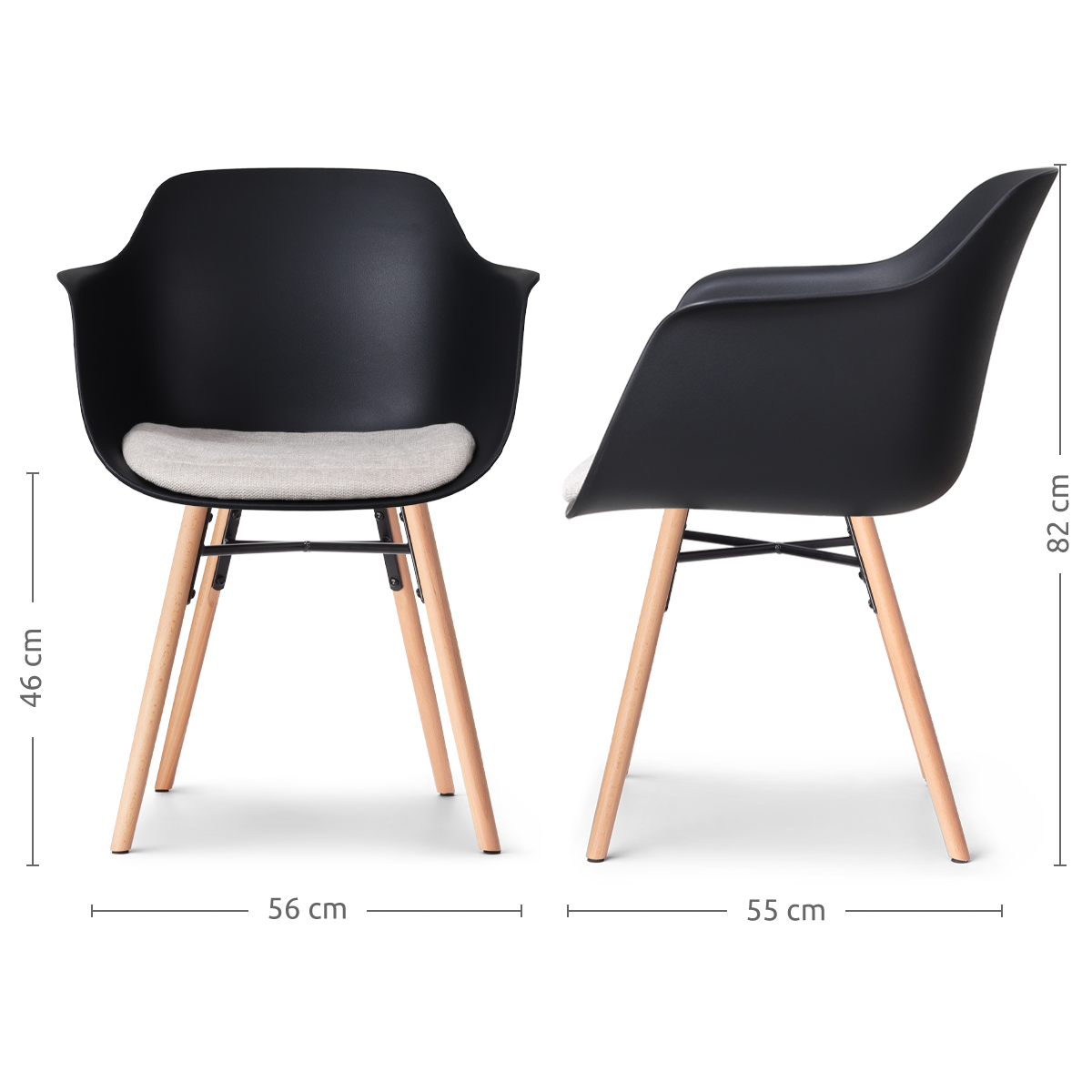 De ergonomische vorm en het doordachte design maken van de Nena-Liz de ideale keuze voor je eethoek. Deze eetkamerstoel combineert een functionele kunststof zitting met een sfeervol houten onderstel. De beukenhouten poten hebben een naturel houtkleur en worden verstevigd door een zwarte metalen kruisverbinding bovenin. De zitting is gemaakt van door en door gekleurd kunststof, waardoor de stoel bestand is tegen krassen en beschadigingen. Dankzij de flexibele kunststof kuip en de armleuningen kan je een ontspannen zithouding aannemen, terwijl het vaste zitkussen bekleed met hoogwaardige stof ervoor zorgt dat je lekker zacht zit. Het leuke aan de Nena-Liz eetkamerstoel is dat je zelf kan bepalen hoe hij eruitziet. Maak een keuze uit de witte of zwarte zitting en kies uit vijf verschillende kleuren stof voor het vaste zitkussen om deze stoel helemaal aan jouw wensen te laten voldoen.