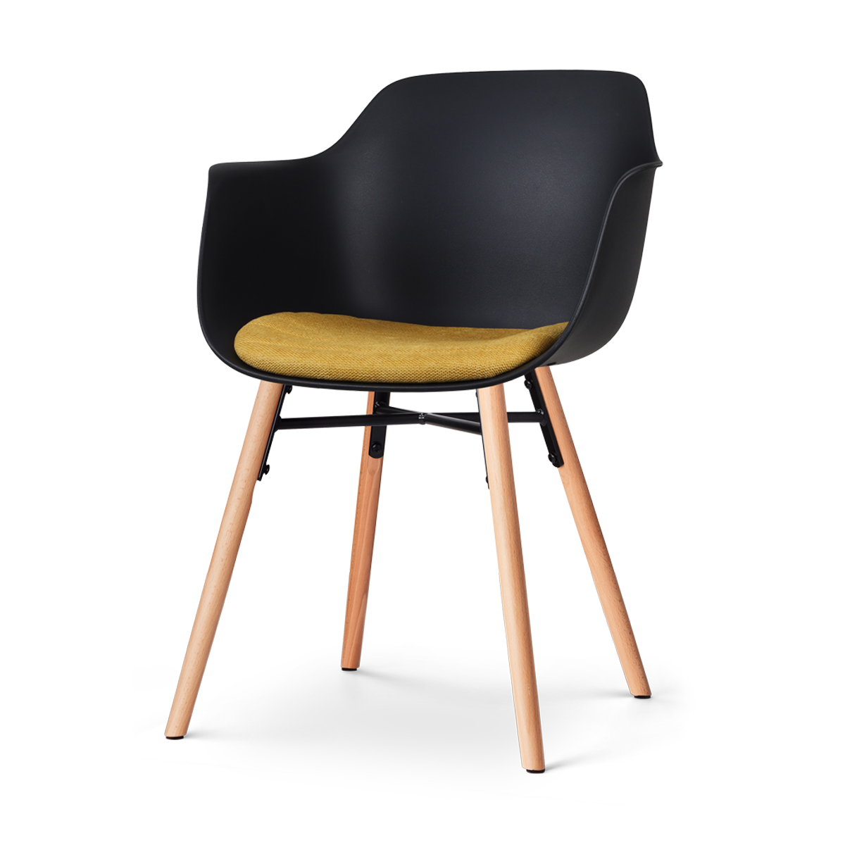 - Het vaste zitkussen met zachte stoffen bekleding zorgt voor een zachte zitervaring