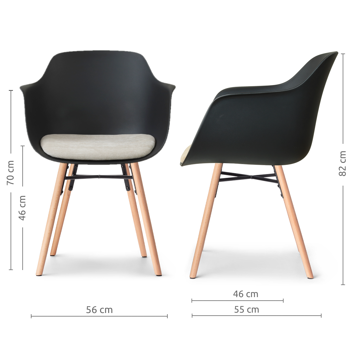 De ergonomische vorm en het doordachte design maken van de Nena-Liz de ideale keuze voor je eethoek. Deze eetkamerstoel combineert een functionele kunststof zitting met een sfeervol houten onderstel. De beukenhouten poten hebben een naturel houtkleur en worden verstevigd door een zwarte metalen kruisverbinding bovenin. De zitting is gemaakt van door en door gekleurd kunststof, waardoor de stoel bestand is tegen krassen en beschadigingen. Dankzij de flexibele kunststof kuip en de armleuningen kan je een ontspannen zithouding aannemen, terwijl het vaste zitkussen bekleed met hoogwaardige stof ervoor zorgt dat je lekker zacht zit. Het leuke aan de Nena-Liz eetkamerstoel is dat je zelf kan bepalen hoe hij eruitziet. Maak een keuze uit de witte of zwarte zitting en kies uit vijf verschillende kleuren stof voor het vaste zitkussen om deze stoel helemaal aan jouw wensen te laten voldoen.