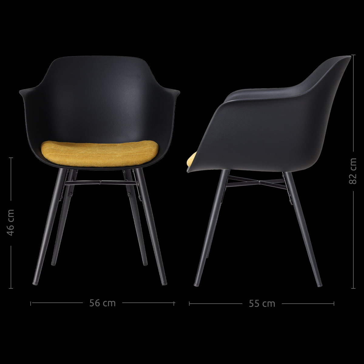 - Deze stoel is voorzien van oplopende armleuningen van 68,5-70,5 cm. Controleer altijd even of deze wel onder de tafel passen.