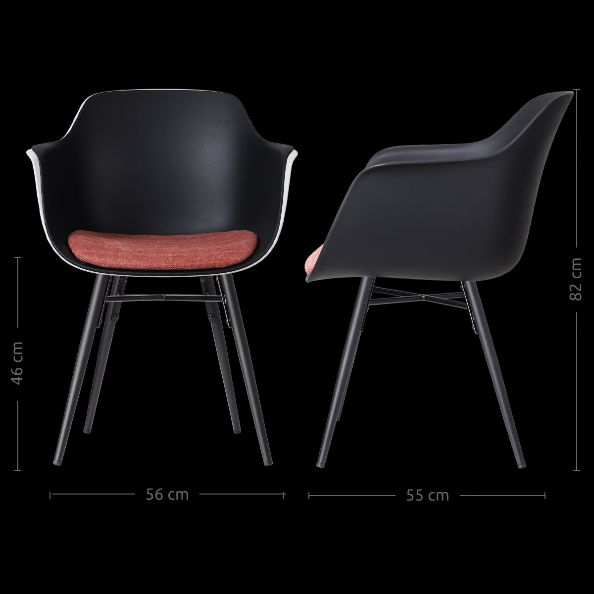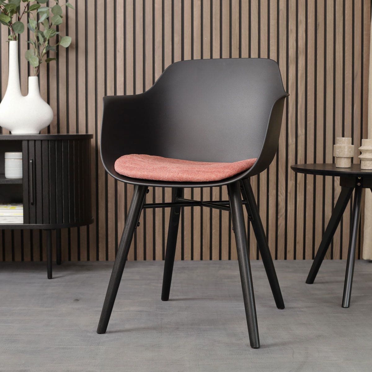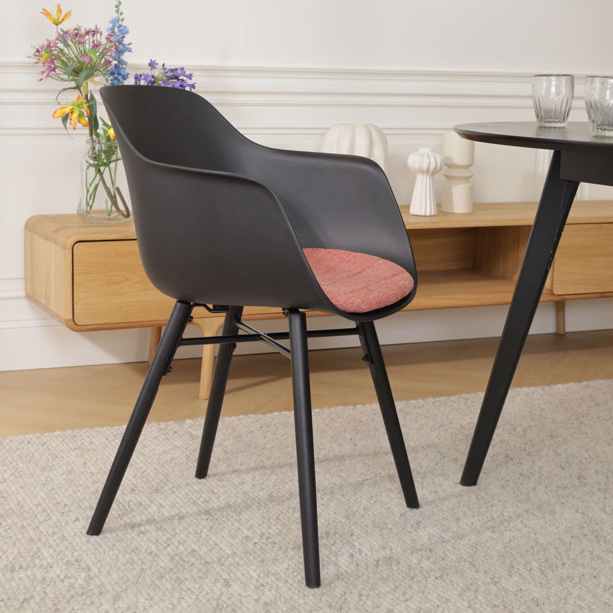 Een praktische en tegelijkertijd sfeervolle eetruimte creëer je met de Nena-Liz eetkamerstoel met kunststof zitting en armleuningen.