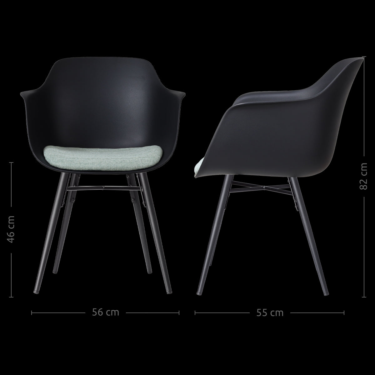 - Deze stoel is voorzien van oplopende armleuningen van 68,5-70,5 cm. Controleer altijd even of deze wel onder de tafel passen.