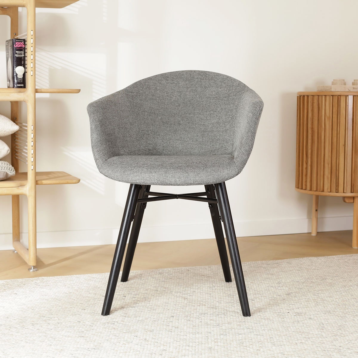 Deze eetkamerstoel is ontworpen met oog voor detail en combineert functionaliteit en stijl op perfecte wijze. De stoel heeft een onderstel van vier beukenhouten poten met een zwarte metalen kruisverbinding. Dit zwarte houten onderstel zorgt voor een warme uitstraling in de eethoek en draagt tevens bij aan de stabiliteit en duurzaamheid van de stoel. De zitting is ontworpen met ergonomische vormen en aflopende armleuningen om het lichaam optimaal te ondersteunen en een hoog zitcomfort te bieden. De kuipzitting is bekleed met hoogwaardige stof voor een zachte zitervaring en is in zes verschillende kleuren verkrijgbaar. Is de Otis zitting met armleuningen precies wat je zoekt maar heb je liever een ander onderstel? Dat kan met de uitgebreide mix en match collectie van Nolon!