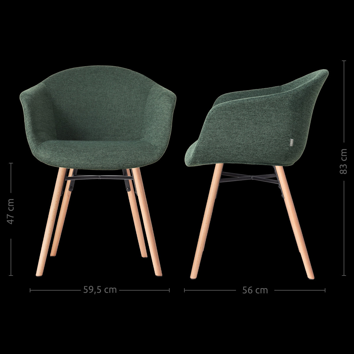 - Beukenhouten onderstel met een metalen kruisverbinding voor extra stevigheid