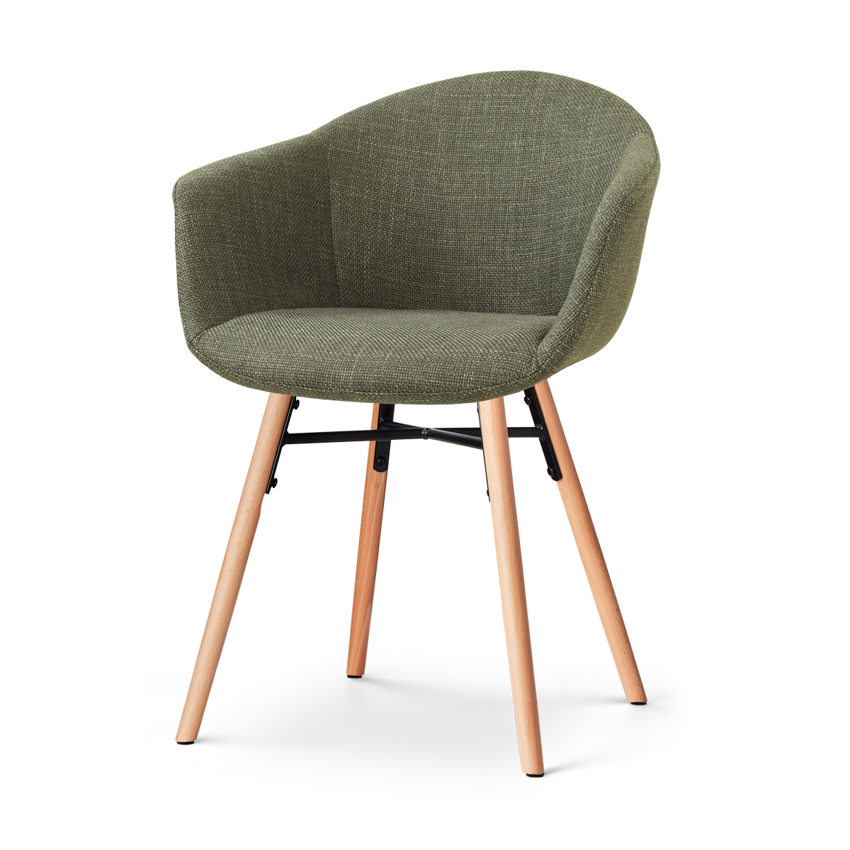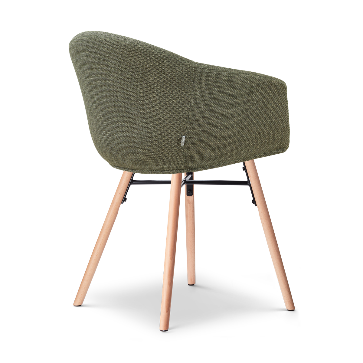 De Nena-Otis in donker groen geeft je eetkamer direct een luxe en serene sfeer. De rijke stof in combinatie met de oplopende armleuningen biedt een comfortabele zitervaring en een chique uitstraling. De naturel houten poten zorgen voor balans en een warme afwerking, waardoor deze stoel perfect past in een Japandi of modern interieur.