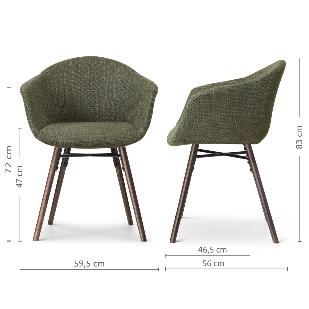 De diepe forestgroene stoffering van de Nena-Otis komt prachtig tot zijn recht op het walnoot houten onderstel. Samen zorgen ze voor een luxe, natuurlijke uitstraling die perfect past bij Japandi of Scandinavisch geïnspireerde eetkamers.