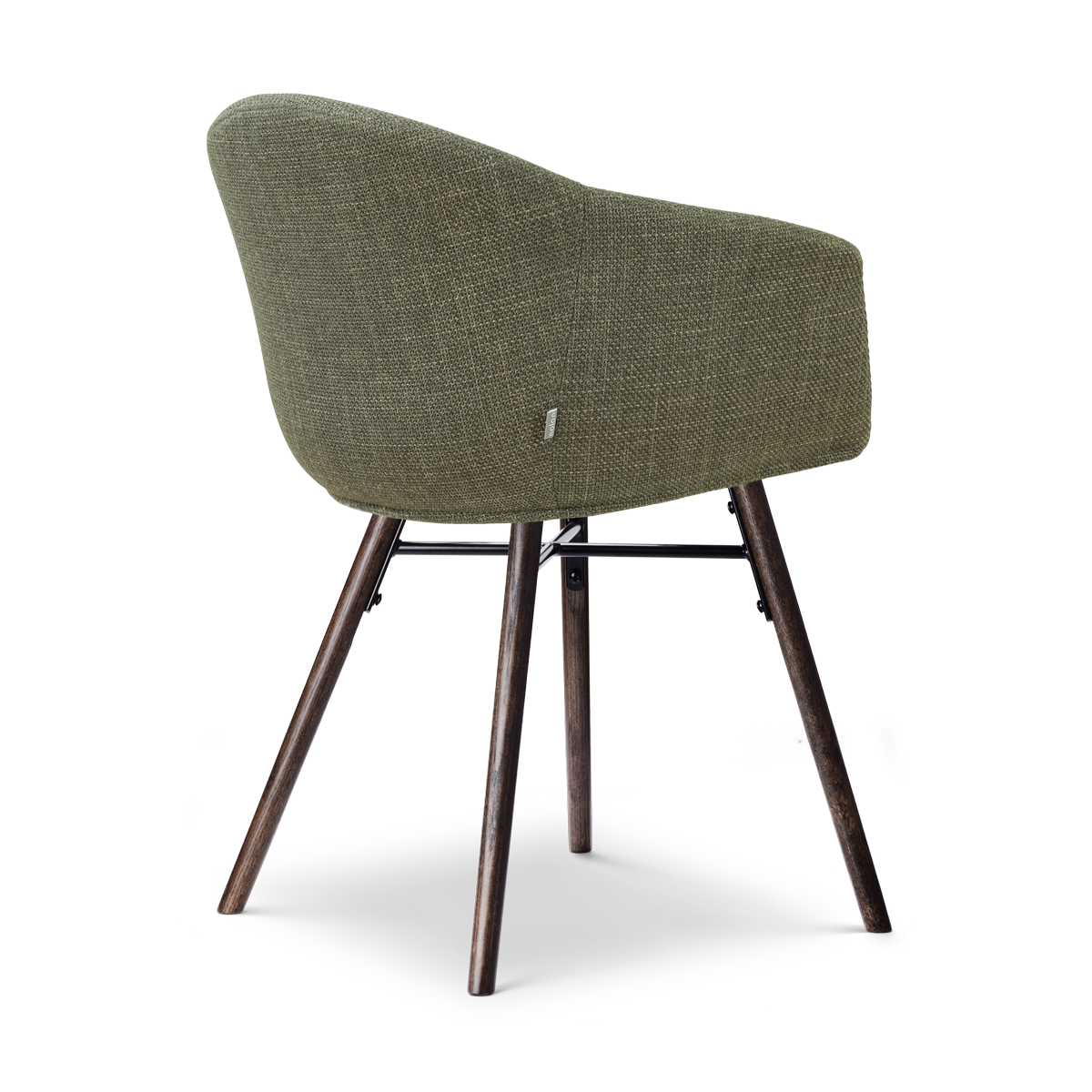 forestgroene eetkamerstoel met luxe walnoot onderstel