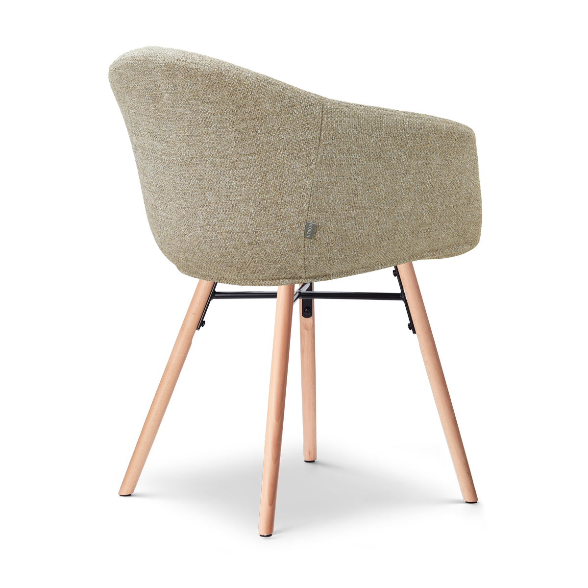 De Nena-Otis brengt rust en comfort in je eetkamer. De zachte taupekleurige bekleding maakt de stoel veelzijdig en eenvoudig te combineren met lichte en donkere tinten. De oplopende armleuningen bieden extra comfort en geven de stoel een verfijnde uitstraling. Het beukenhouten onderstel in naturel benadrukt de minimalistische Japandi look en zorgt voor stabiliteit.