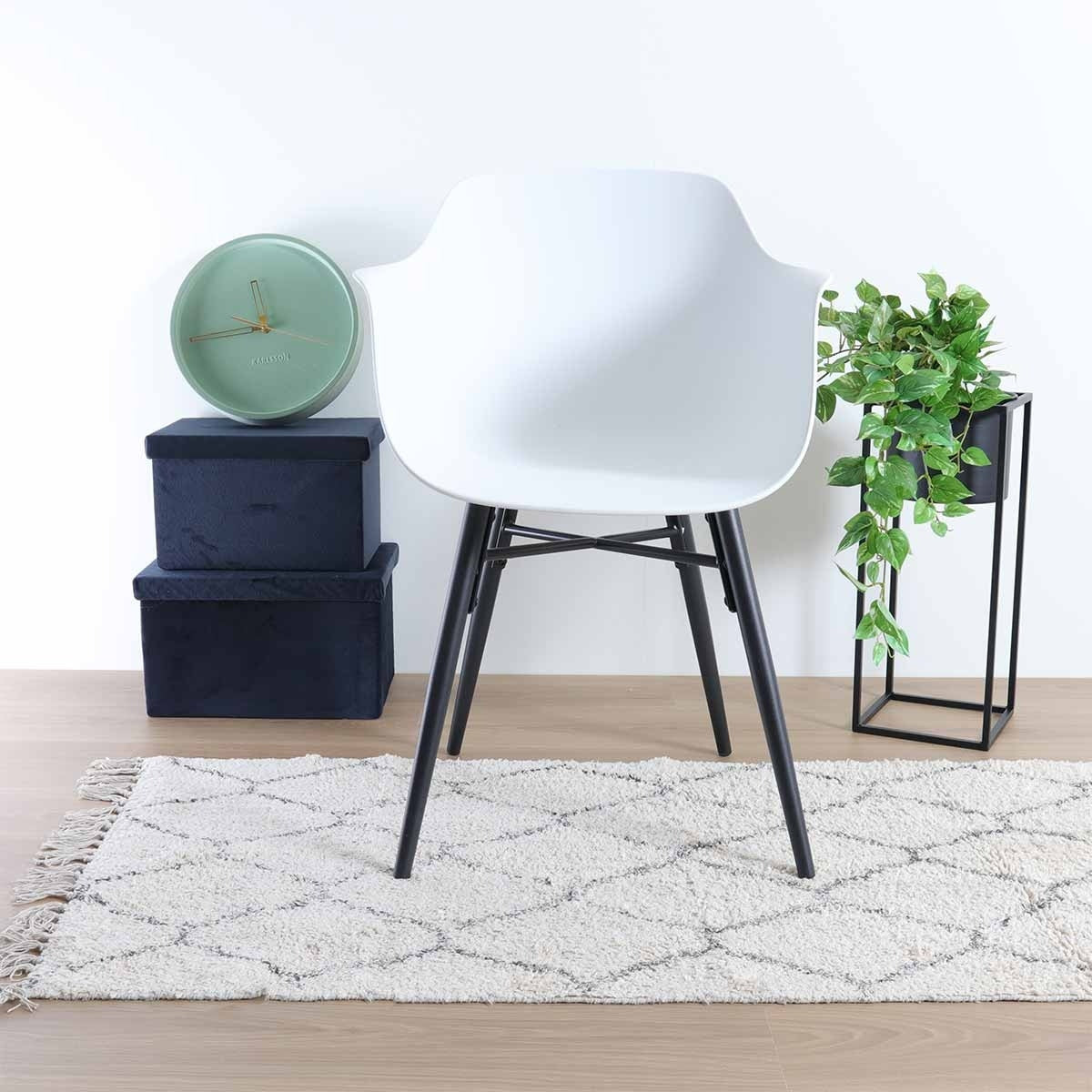De Nena-Puk eetkamerstoel wit - zwart houten onderstel is onderdeel van een mix en match collectie. Dit betekent dat zowel het onderstel als de zitting van deze stoel in diverse andere combinaties verkrijgbaar zijn. Zo kunt u kiezen voor de Nena-Puk eetkamerstoel wit met een houten onderstel, of de variant met een walnoten houten onderstel. Voor een subtiel contrast is er de Nena-Puk eetkamerstoel zwart met een houten onderstel, of met een walnoten houten onderstel. Voor een meer gestroomlijnde look is er ook de zwarte zitting met een zwart houten onderstel beschikbaar. Met deze varianten kunt u de perfecte combinatie kiezen die aansluit bij uw interieurstijl.