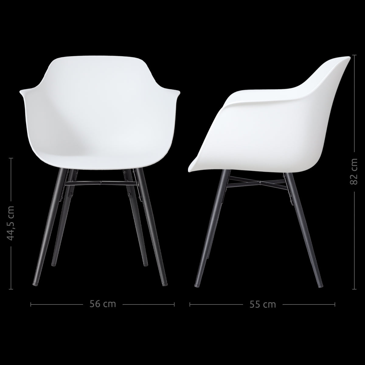 Deze Scandinavisch geïnspireerde kuipstoel combineert stijl met comfort en biedt een ontspannen zithouding dankzij de ergonomische kunststof zitting met armleuningen. Met een hoogte van 82 cm, een zithoogte van 45 cm, en een zitdiepte van 46 cm, is deze stoel perfect voor lange diners aan de eettafel. Het niet-draaibare ontwerp zorgt voor stabiliteit, terwijl de zwarte beukenhouten poten met metalen kruisverbinding een stevige basis vormen. De door en door gekleurde kunststof zitting in wit is praktisch en onderhoudsvriendelijk, ideaal voor intensief gebruik. Of je nu een moderne of klassieke eetkamer hebt, de Nena-Puk eetkamerstoel past naadloos in elke ruimte en biedt een comfortabele zitervaring.