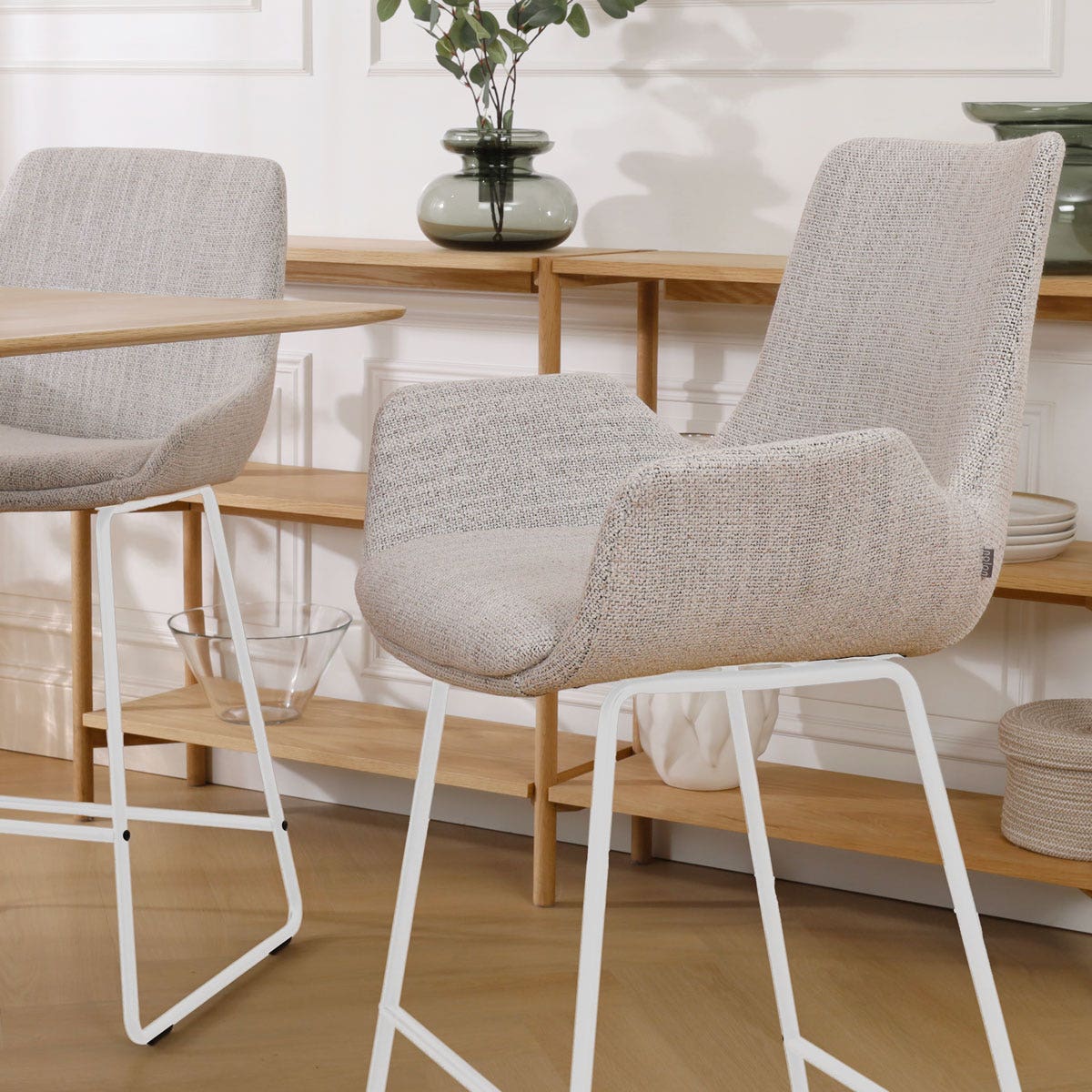 De Nino-Eef beige gemêleerde barkruk van Nolon is een stijlvolle barkruk met armleuningen voor aan je kookeiland.