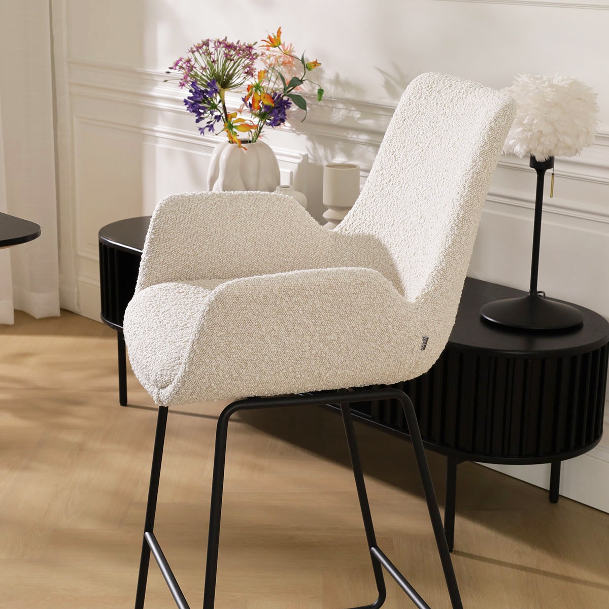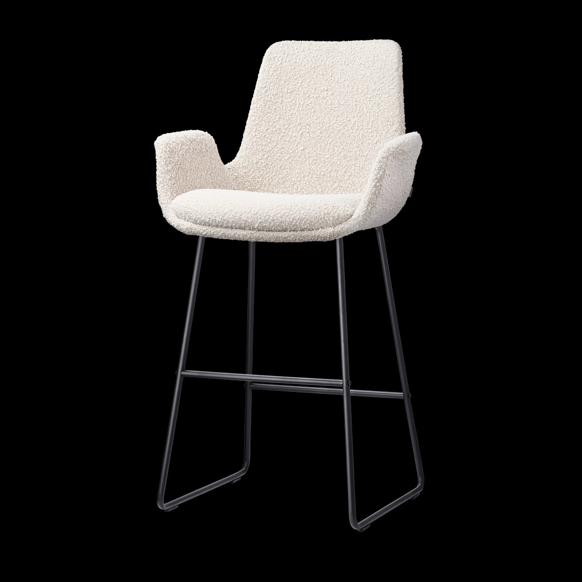 Deze barkruk is ontworpen met zowel functionaliteit als esthetiek in gedachten. Het slanke metalen onderstel zorgt voor een stabiele zit en laat de barkruk tegelijkertijd modern en luchtig ogen. De comfortabele zitting heeft een stevige rugleuning en is verkrijgbaar met luxe stoffen bekleding of bouclé stof. Hiermee is de Nino-Eef een sfeervolle toevoeging aan de keuken. Naast de rugleuning is de Nino-Eef bovendien ontworpen met armleuningen voor extra ondersteuning. Deze armleuningen zijn iets lager dan standaard, wat niet ten koste gaat van het zitcomfort maar er wel voor zorgt dat de kruk beter onder het keukenblad past. De voetsteun op het metalen frame maakt de barkruk vervolgens helemaal af. Maak een keuze uit de verschillende materialen en kleuren van de zitting en geniet van ultieme stijl en comfort aan je kookeiland.
