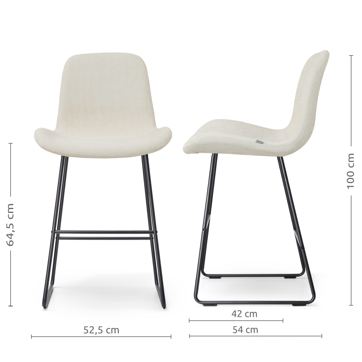 - Dankzij de zithoogte van 65 cm geschikt voor aan een kookeiland of keukenblad met een hoogte van ca. 88-95 cm