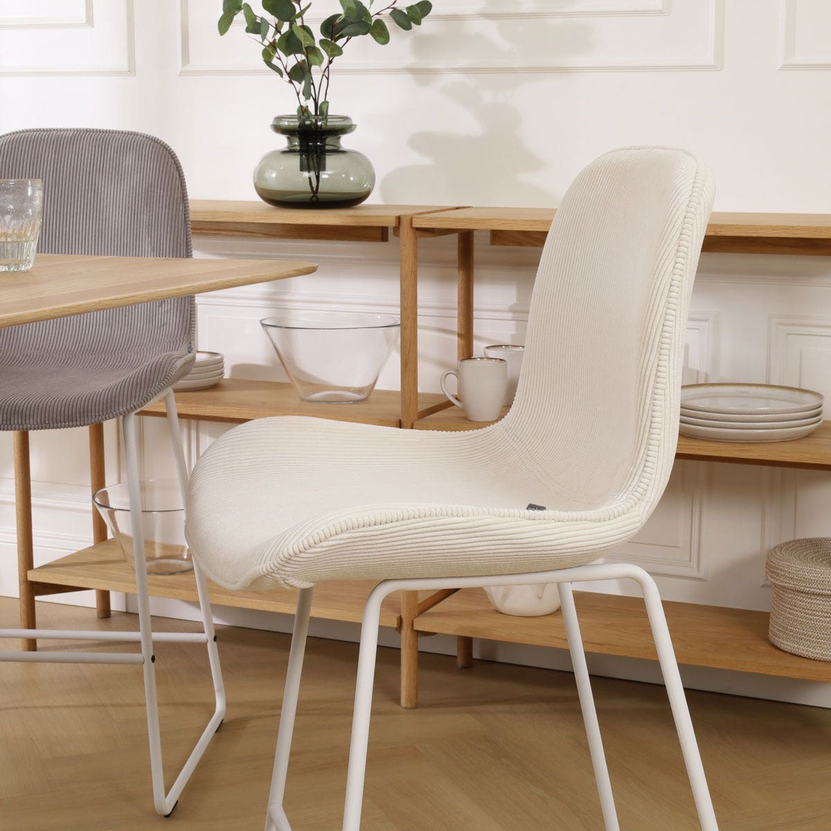 - De zachte stoffen bekleding zorgt voor een warme sfeer in de keuken