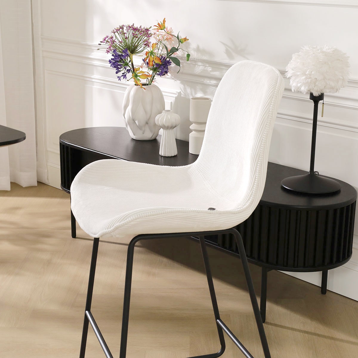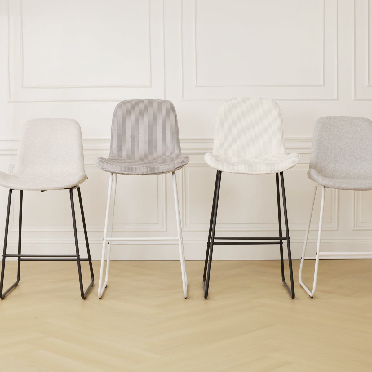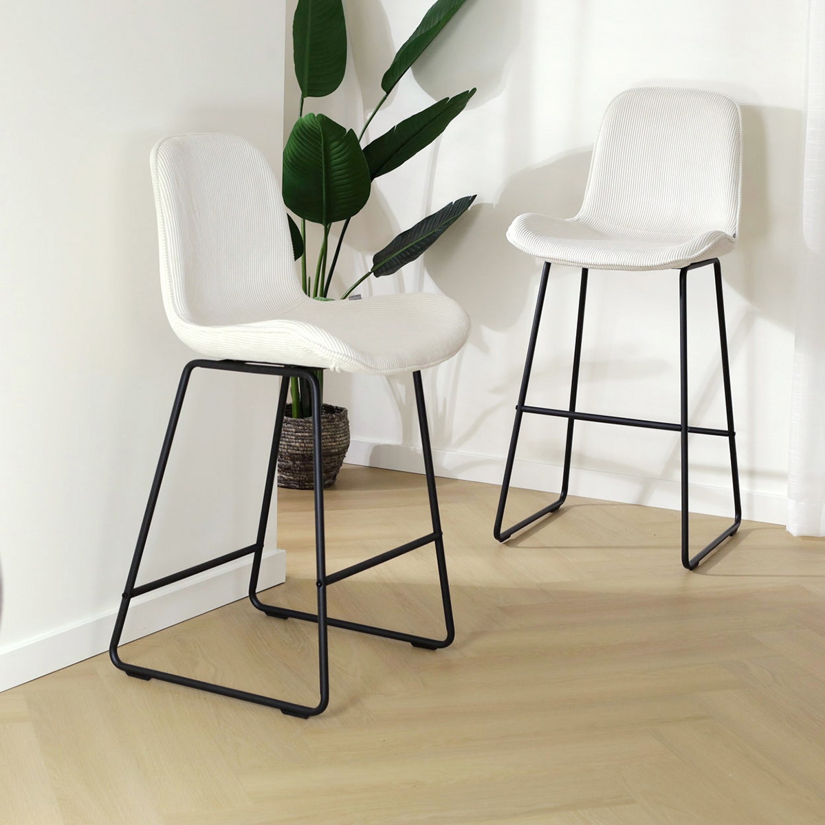 Deze moderne barkruk combineert namelijk een strak metalen onderstel met een zachte gestoffeerde zitting, en is tegelijkertijd ook nog eens erg comfortabel. De zitting van deze kruk is ontworpen met subtiele rondingen en een gevleugeld zitvlak om ervoor te zorgen dat je urenlang comfortabel kan zitten. De zachte bekleding draagt bij aan het zitcomfort en zorgt bovendien voor een warme sfeer in de eethoek. Met diverse kleuren en materialen om uit te kiezen kan je deze barkruk helemaal aan jouw interieur aanpassen. Kies uit het witte of zwarte onderstel en combineer deze met de zitting in bijvoorbeeld ribstof of teddystof voor een ware blikvanger in huis. Met een zithoogte van 74,5 cm is deze barkruk geschikt voor aan een hoge eettafel of bar. Heb je een lager model nodig? De Nino-Fé is ook verkrijgbaar in een kookeiland variant.
