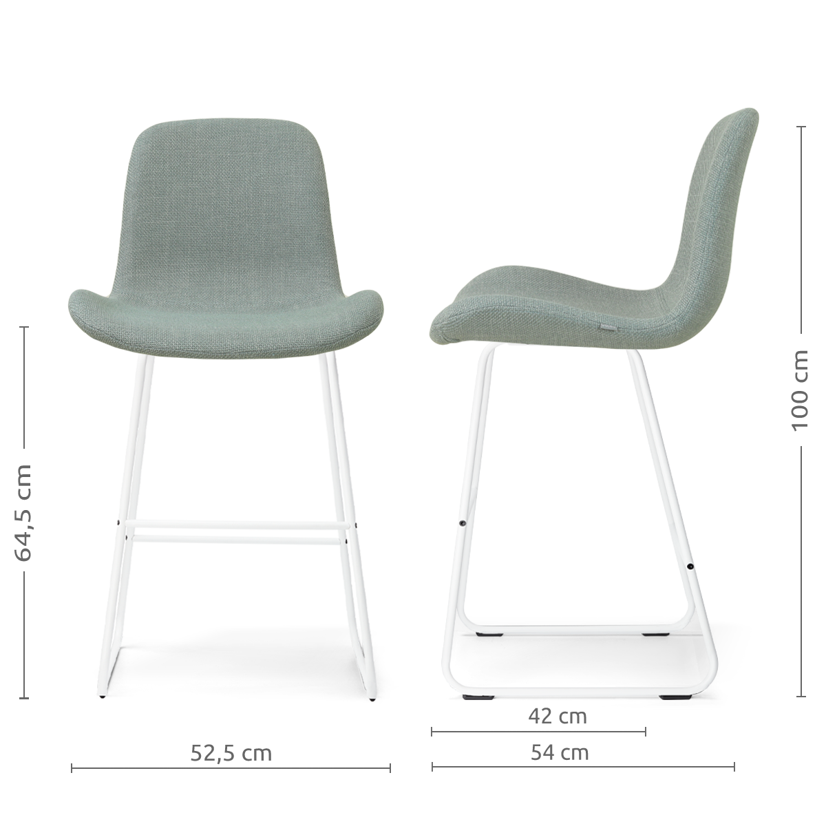 - Dankzij de zithoogte van 65 cm geschikt voor aan een kookeiland of keukenblad met een hoogte van ca. 88-95 cm