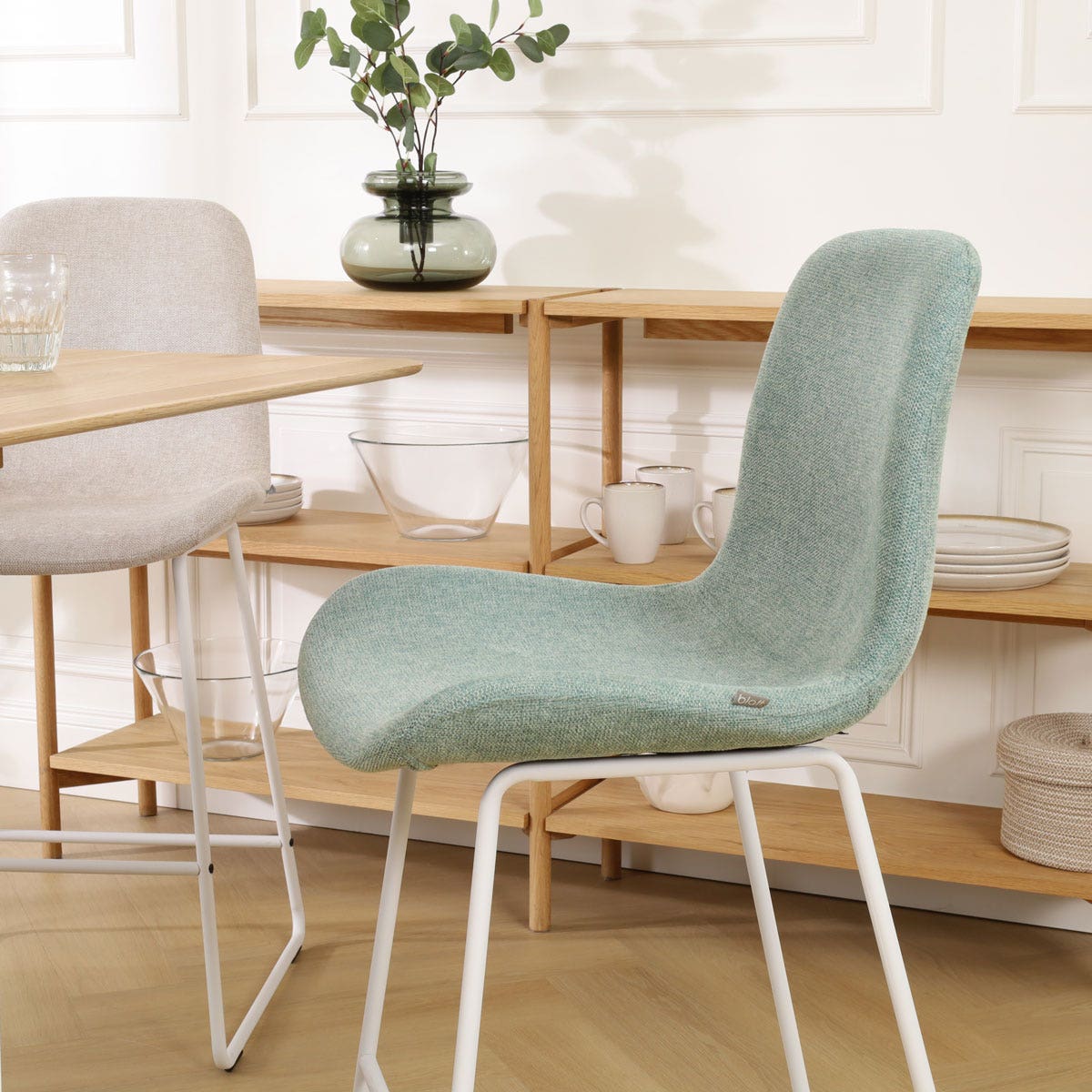 - De zachte stoffen bekleding zorgt voor een warme sfeer in de keuken