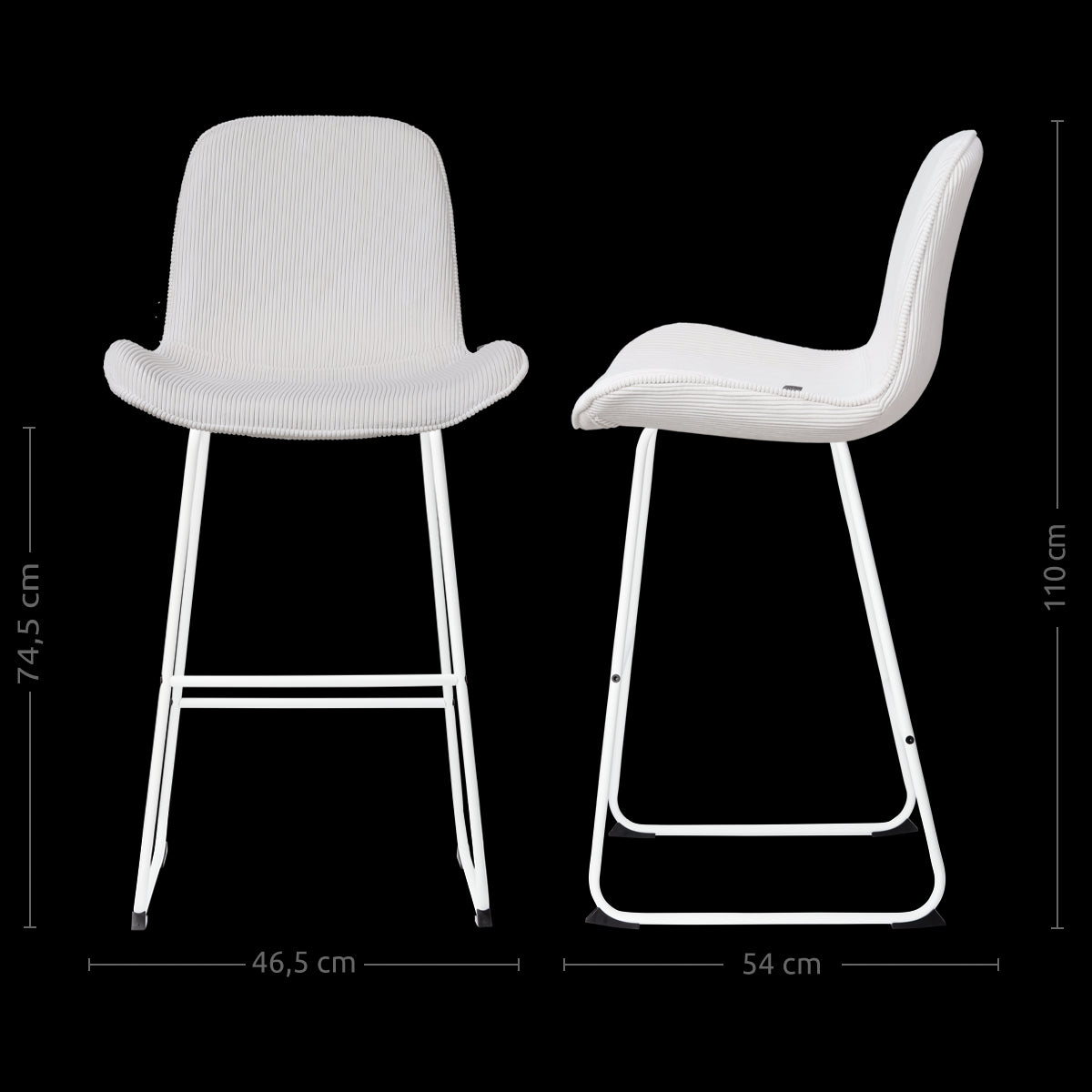 Deze moderne barkrukken combineren namelijk een strak metalen onderstel met een zachte gestoffeerde zitting, en zijn tegelijkertijd ook nog eens erg comfortabel. De zitting van deze kruk is ontworpen met subtiele rondingen en een gevleugeld zitvlak om ervoor te zorgen dat je urenlang comfortabel kan zitten. De zachte bekleding draagt bij aan het zitcomfort en zorgt bovendien voor een warme sfeer in de eethoek. Met diverse kleuren en materialen om uit te kiezen kan je deze barkruk helemaal aan jouw interieur aanpassen. Kies uit het witte of zwarte onderstel en combineer deze met de zitting in bijvoorbeeld ribstof of teddystof voor een ware blikvanger in huis. Met een zithoogte van 74,5 cm is deze barkruk geschikt voor aan een hoge eettafel of bar. Heb je een lager model nodig? De Nino-Fé is ook verkrijgbaar in een kookeiland variant.