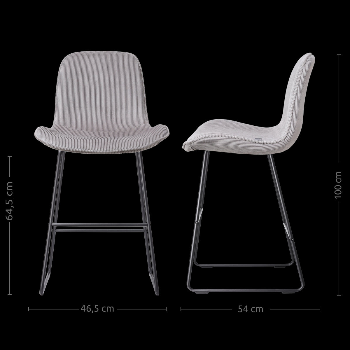 - Dankzij de zithoogte van 65 cm geschikt voor aan een kookeiland of keukenblad met een hoogte van ca. 88-95 cm