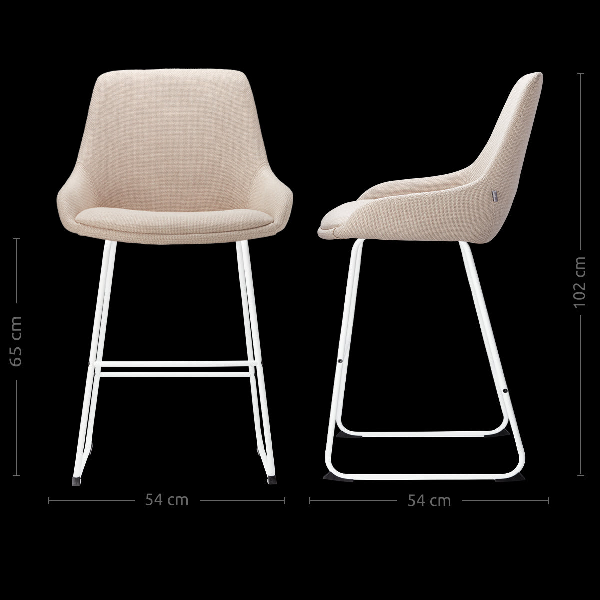 - Aangeraden wordt om de stoffen zitting van de Nino-Isa barkruk, met zijn beige bekleding en wit onderstel van 65 cm, voor het eerste gebruik te impregneren voor een langere levensduur. Gebruik hiervoor een impregneerspray.