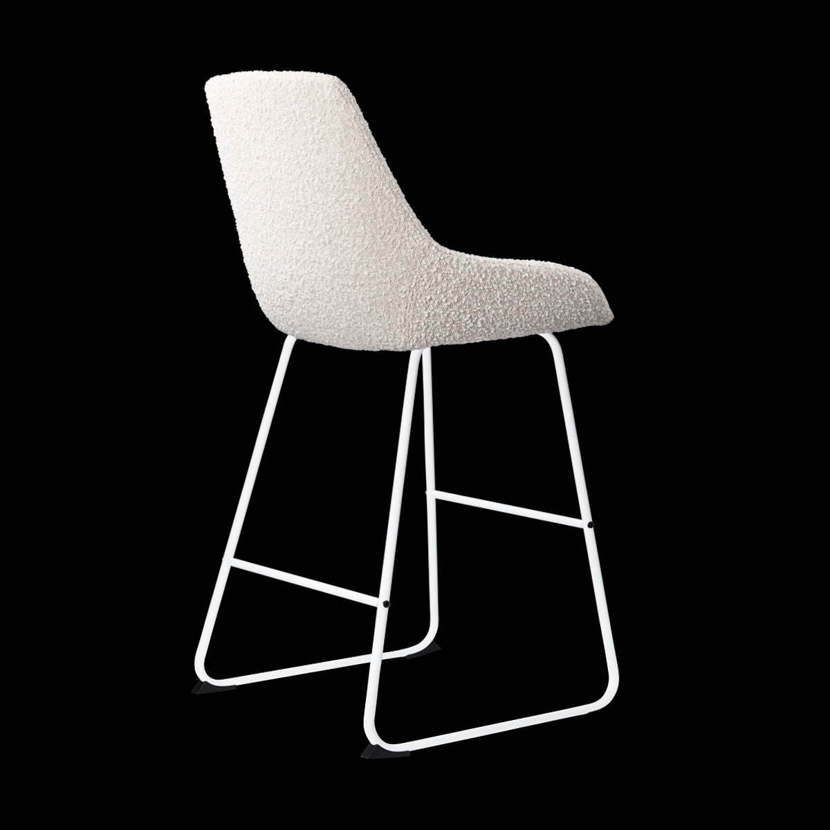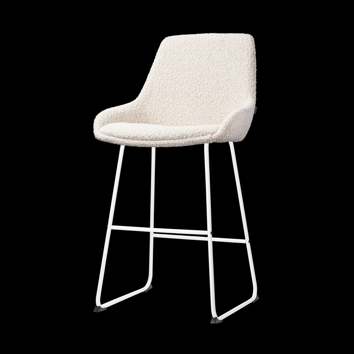 Met een zithoogte van 65 cm is deze barkruk perfect geschikt voor keukenbladen met een hoogte van ongeveer 88-95 cm. Het Scandinavische, moderne design zonder armleuningen zorgt ervoor dat de barkruk gemakkelijk onder het keukenblad geschoven kan worden, wat perfect is voor kleinere ruimtes. De zitting is bekleed met een luxe bouclé stof, die naast warmte ook een rijke uitstraling biedt, en is volledig gestoffeerd voor extra comfort. Het slanke, metalen frame met witte poten geeft de barkruk een stevige basis en een moderne uitstraling. Voor extra gebruiksgemak is de barkruk zeer eenvoudig in elkaar te zetten. Dankzij de ergonomische vorm en de voetsteun op het frame biedt de kruk een comfortabele zithouding, terwijl het luchtige ontwerp ervoor zorgt dat de bar zelf nog goed zichtbaar blijft. De Nino-Isa barkruk is 102 cm hoog en heeft een zitdiepte van 40 cm, en het witte metalen onderstel maakt het compleet. De veelzijdigheid van de zitting, die in zeven verschillende kleuren verkrijgbaar is, stelt je in staat de kruk aan te passen aan jouw persoonlijke smaak en interieur.