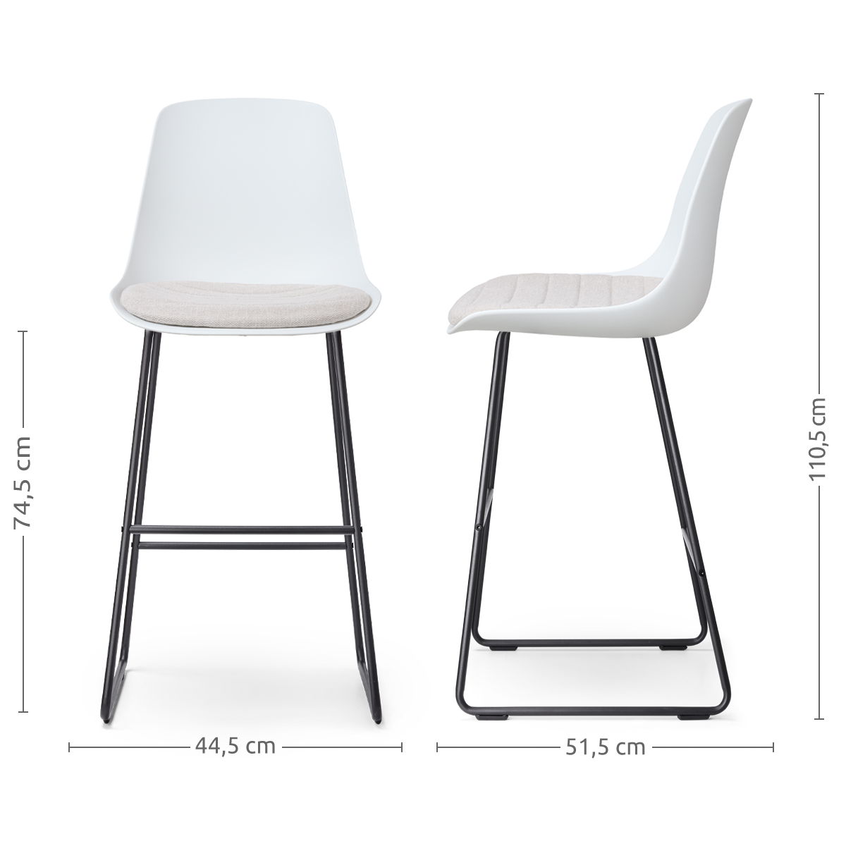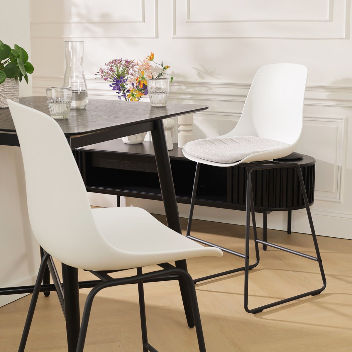 Deze barkruk heeft een strak en modern design dat een mooie aanvulling is voor veel verschillende woonstijlen. Het frame van deze kruk is gemaakt van metaal en is ontworpen met subtiele rondingen en slanke poten voor een minimalistische uitstraling. De zitting is gemaakt van kunststof, wat de Nino-Liv barkruk erg praktisch maakt in gebruik. Dit materiaal is duurzaam, slijtvast en gemakkelijk schoon te maken als er is geknoeid. De perfecte keuze voor een eethoek waar veel tijd wordt doorgebracht dus. Het vaste zitkussen zorgt ervoor dat je net iets zachter zit en voegt bovendien een vleugje kleur toe in de eethoek. Maak een keuze uit de vijf verschillende kleuren stoffen bekleding en kies tussen wit of zwart voor de zitting en het frame, om deze barkruk helemaal aan jouw inrichting aan te passen. Met een zithoogte van 74,5 cm is deze kunststof barkruk geschikt om te gebruiken aan een hoge bar of eettafel. Op zoek naar een lager exemplaar? De Nino-Liv barkruk is ook verkrijgbaar met aan lagere zithoogte.