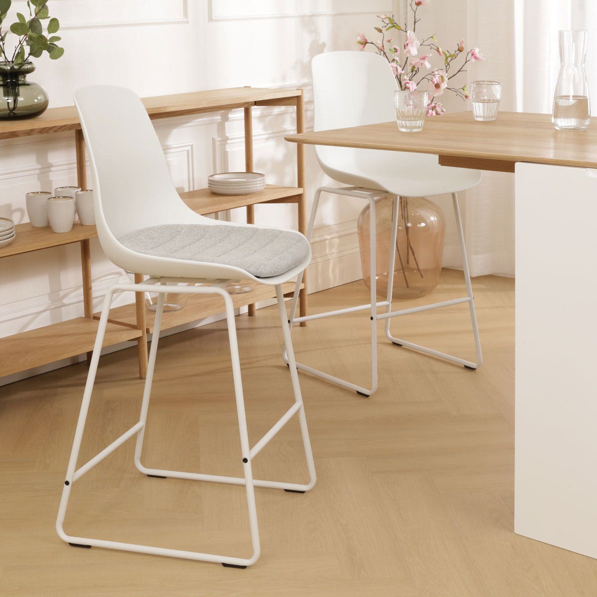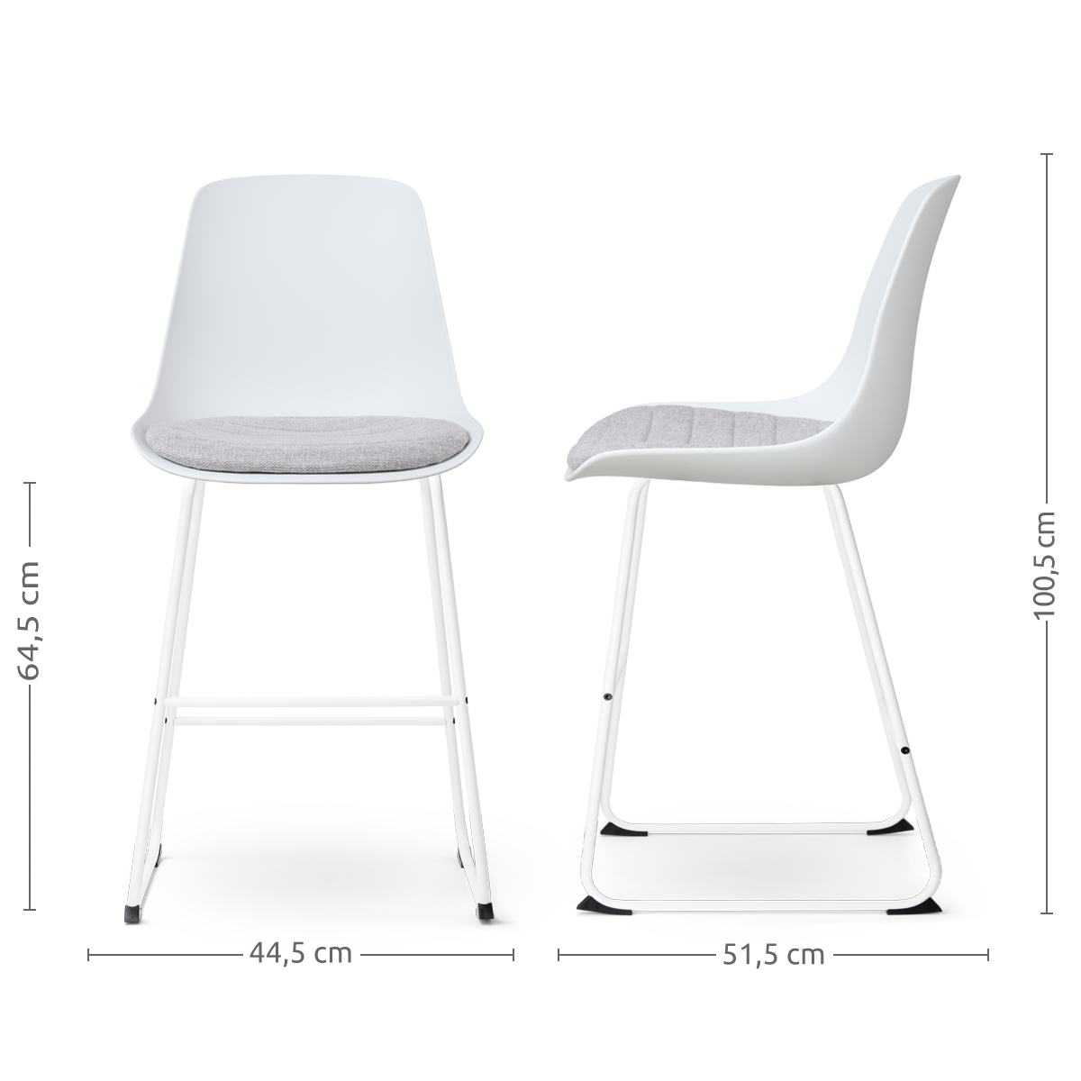 - Dankzij de zithoogte van 64,5 cm geschikt voor aan een kookeiland of keukenblad met een hoogte van ca. 88-95 cm