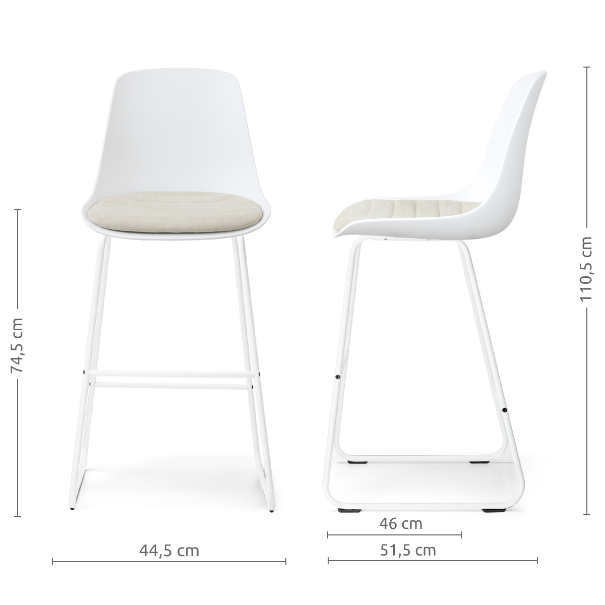 - Dankzij de zithoogte van 74,5 cm geschikt voor aan een bar of hoge eettafel met een hoogte van ca. 98-105 cm