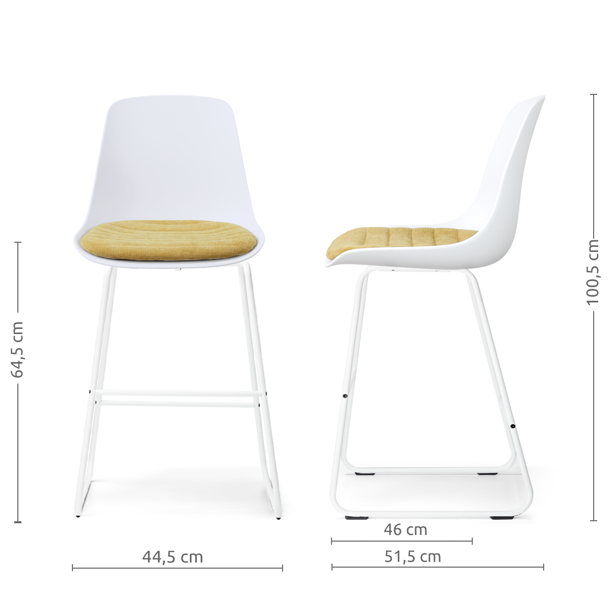 - Dankzij de zithoogte van 64,5 cm geschikt voor aan een kookeiland of keukenblad met een hoogte van ca. 88-95 cm