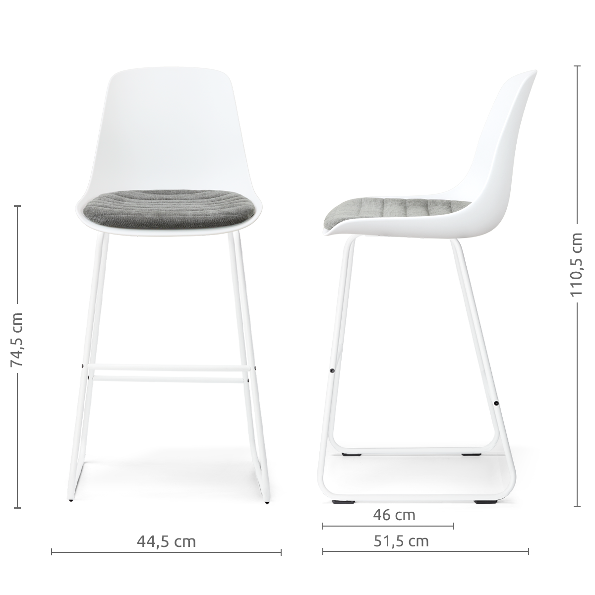 - Dankzij de zithoogte van 74,5 cm geschikt voor aan een bar of hoge eettafel met een hoogte van ca. 98-105 cm