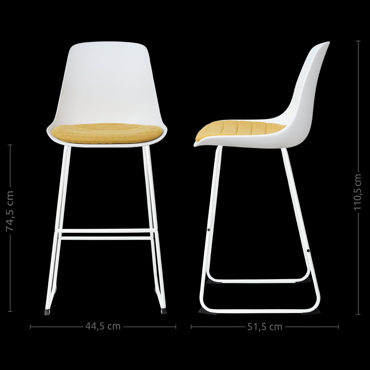 Deze barkruk heeft een strak en modern design dat een mooie aanvulling is voor veel verschillende woonstijlen. Het frame van deze kruk is gemaakt van metaal en is ontworpen met subtiele rondingen en slanke poten voor een minimalistische uitstraling. De zitting is gemaakt van kunststof, wat de Nino-Liv barkruk erg praktisch maakt in gebruik. Dit materiaal is duurzaam, slijtvast en gemakkelijk schoon te maken als er is geknoeid. De perfecte keuze voor een eethoek waar veel tijd wordt doorgebracht dus. Het vaste zitkussen zorgt ervoor dat je net iets zachter zit en voegt bovendien een vleugje kleur toe in de eethoek. Maak een keuze uit de vijf verschillende kleuren stoffen bekleding en kies tussen wit of zwart voor de zitting en het frame, om deze barkruk helemaal aan jouw inrichting aan te passen. Met een zithoogte van 74,5 cm is deze kunststof barkruk geschikt om te gebruiken aan een hoge bar of eettafel. Op zoek naar een lager exemplaar? De Nino-Liv barkruk is ook verkrijgbaar met aan lagere zithoogte.