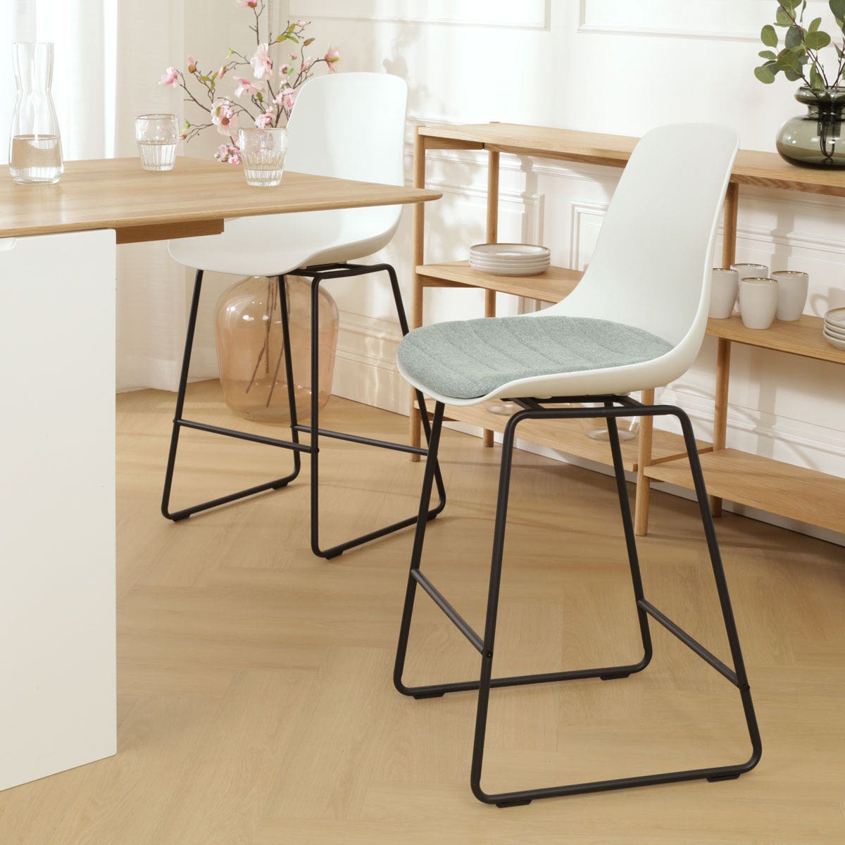 De barkruk heeft een slank en minimalistisch metalen frame dat voor stabiliteit zorgt. Het frame is voorzien van een voetsteun zodat je je benen niet hoeft te laten bungelen. De zitting is gemaakt van kunststof, wat zowel duurzaam als slijtvast is. Bovendien is dit materiaal erg onderhoudsvriendelijk en gemakkelijk schoon te maken, dus de Nino-Liv barkruk is zeer geschikt voor intensief gebruik. Om het comfort van deze moderne barkruk te verhogen, is de zitting voorzien van een vast stoelkussen dat is bekleed met zachte stof. Maak een keuze uit de verschillende kleuren zitting, frame en zitkussen om deze barkruk helemaal aan jouw wensen te laten voldoen. Met een zithoogte van 64,5 cm is deze barkruk geschikt om te gebruiken aan een kookeiland. Heb je een hogere barkruk nodig? Deze barkruk is ook verkrijgbaar met een zithoogte van 74,5 cm.